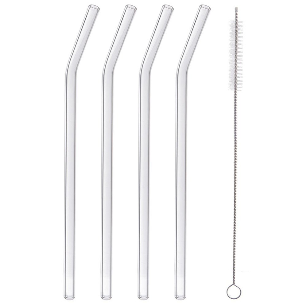 Słomki do napojów szklane z czyścikiem 20 cm 5 el.