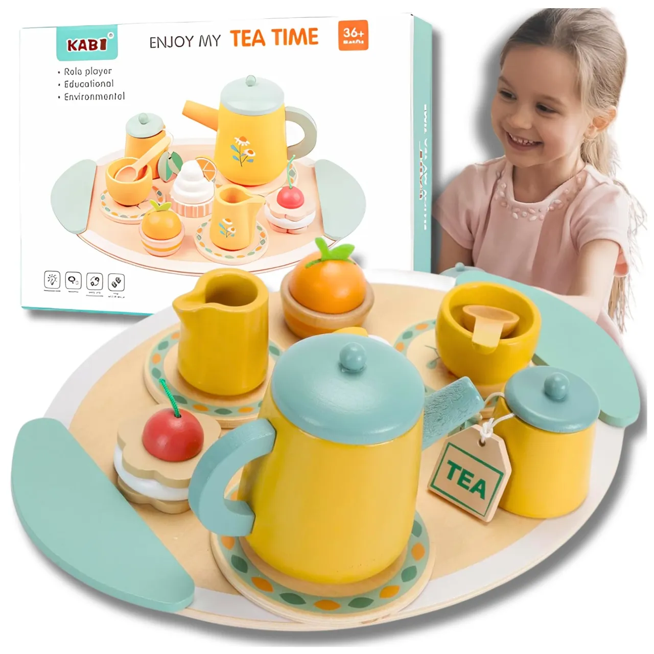 DREWNIANY ZESTAW / SERWIS DO HERBATY / MNÓSTWO ELEMENTÓW / BAWI I UCZY NASZ DREWNIANY SERWIS MA SAME ZALETY✅WYKONANE Z NAJWYŻSZEJ JAKOŚCI DREWNA✅BAWI I UCZY✅ZNAKOMITE ODWZOROWANIE✅DOSKONAŁY PREZENT✅CERTYFIKATY…