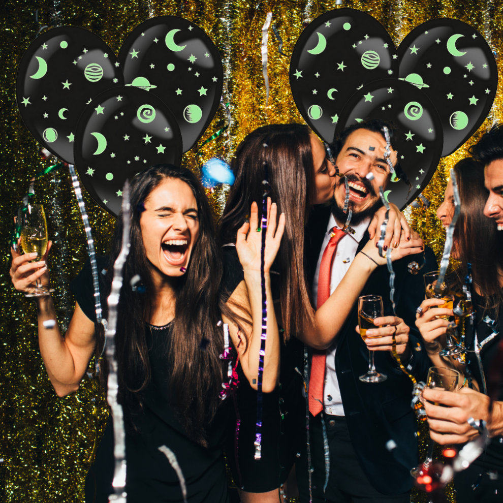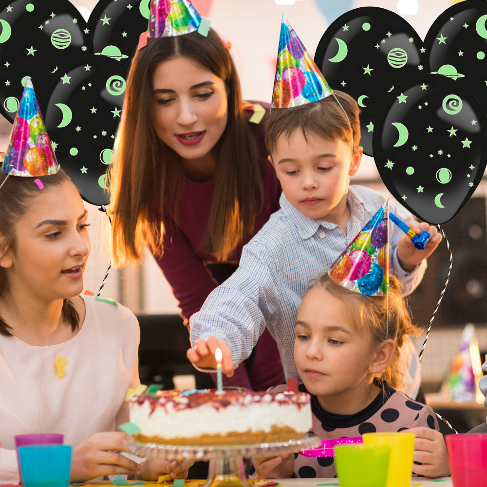 Spraw, by Twoja impreza była nieziemska z tym modnym zestawem balonów od Amscan. Zestaw zawiera trzy stylowe czarne balony i trzy arkusze naklejek pełne świecących w ciemności gwiazd, księżyców i planet. Doskonale sprawdzi się na przyjęciu o tematyce kosmicznej lub jako przyciągający wzrok element dekoracji imprezowych. Niech noc rozświetli się i nadaj swoim dekoracjom magiczny akcent!