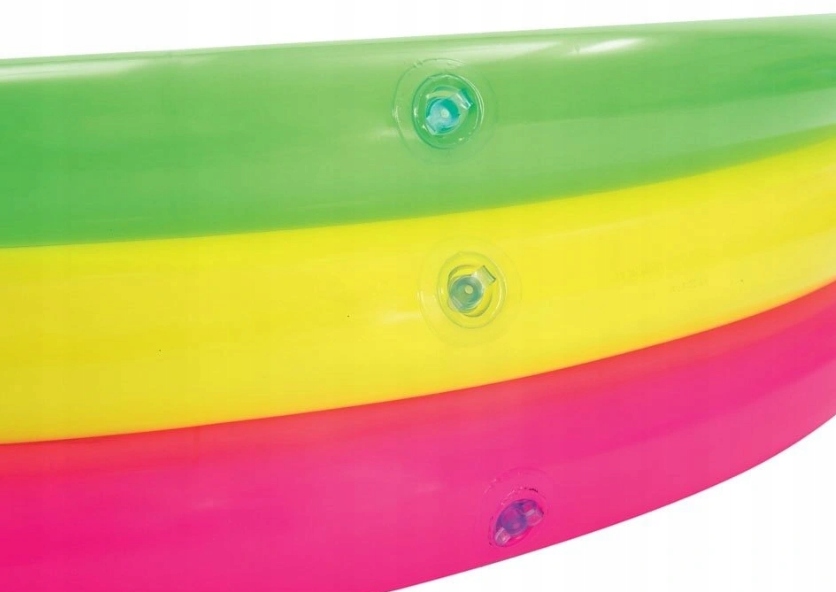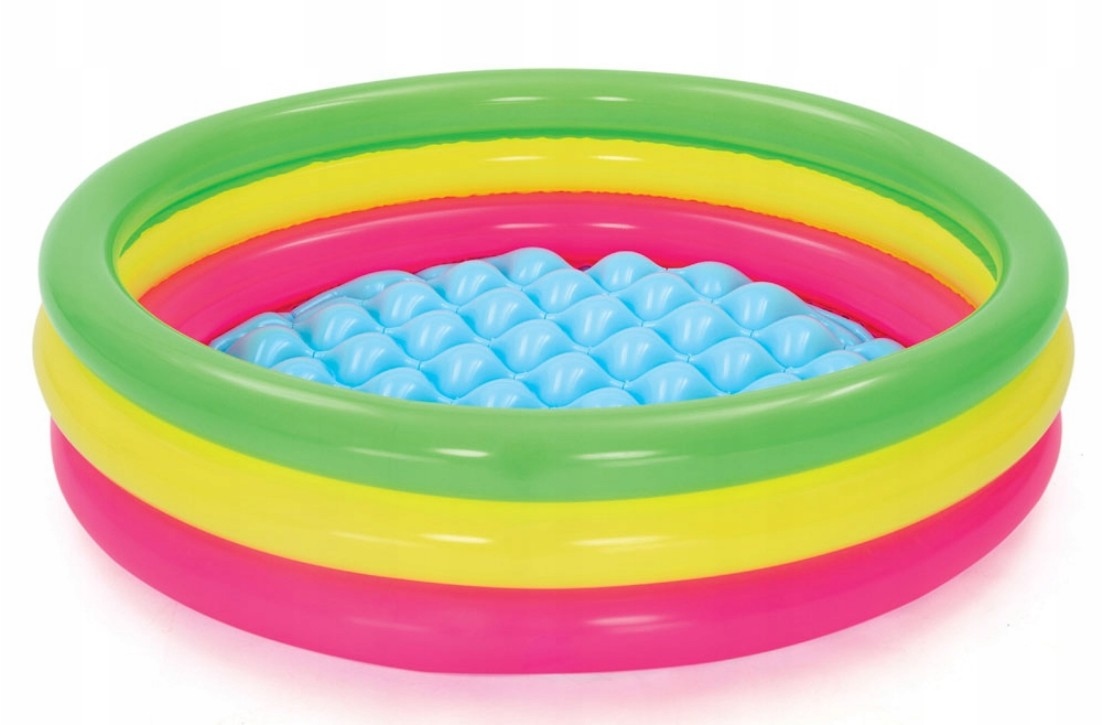 Dmuchany Basen w interesującej kolorystyce pozwoli zapewnić Twojemu dziecku ruch i zabawę w wodzie. Tęczowy basen zaprojektowany został, aby zachęcić dzieci do ruchu i dobrej zabawy na świeżym powietrzu, Dzięki swoim niewielkim rozmiarom nadzwyczajnie pasuje dla dzieci w wieku od 2 lat. Jest nieskomplikowany do nadmuchania i opróżnienia dzięki czemu przechowywanie go nie będzie sprawiało problemów. Miękkie, nadmuchiwane podłoże gwarantuje wygodę.