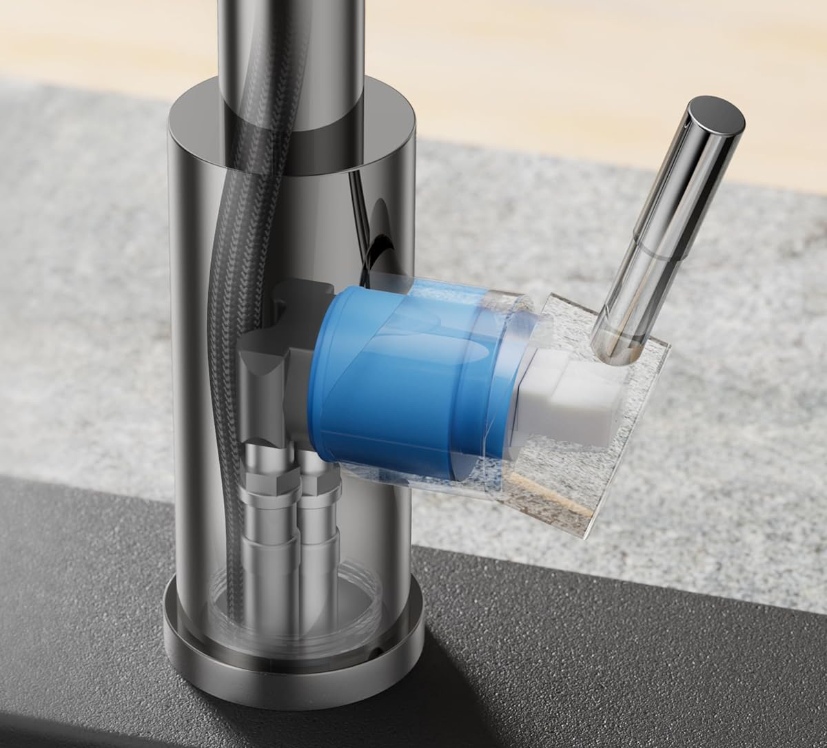 Szybka instalacja: przyjazna dla majsterkowiczów instalacja dzięki elastycznym wężom i szybkozłączkom. Zamontuj samodzielnie w kilka sekund bez potrzeby korzystania z usług profesjonalnego hydraulika.
