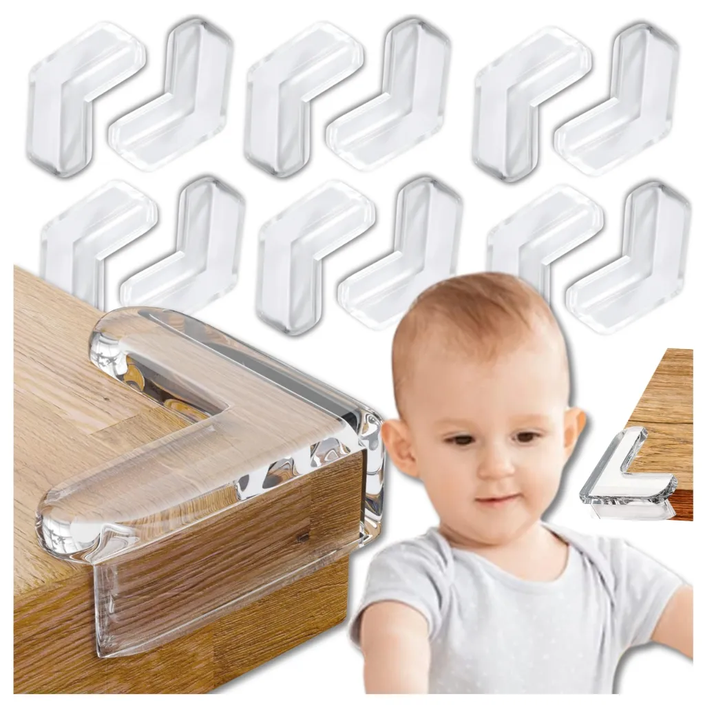 ZABEZPIECZENIE NAROŻNIKÓW NA ROGI STOŁÓW MEBLI NAROŻNIKI BEZBARWNE 12 SZT KSZTAŁT L