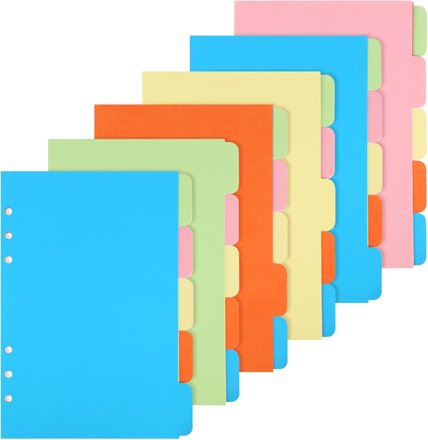 Przekładki do segregatora A5 30 arkuszy 6 zestawów 5 kolorów 6 otworów 21x15cm