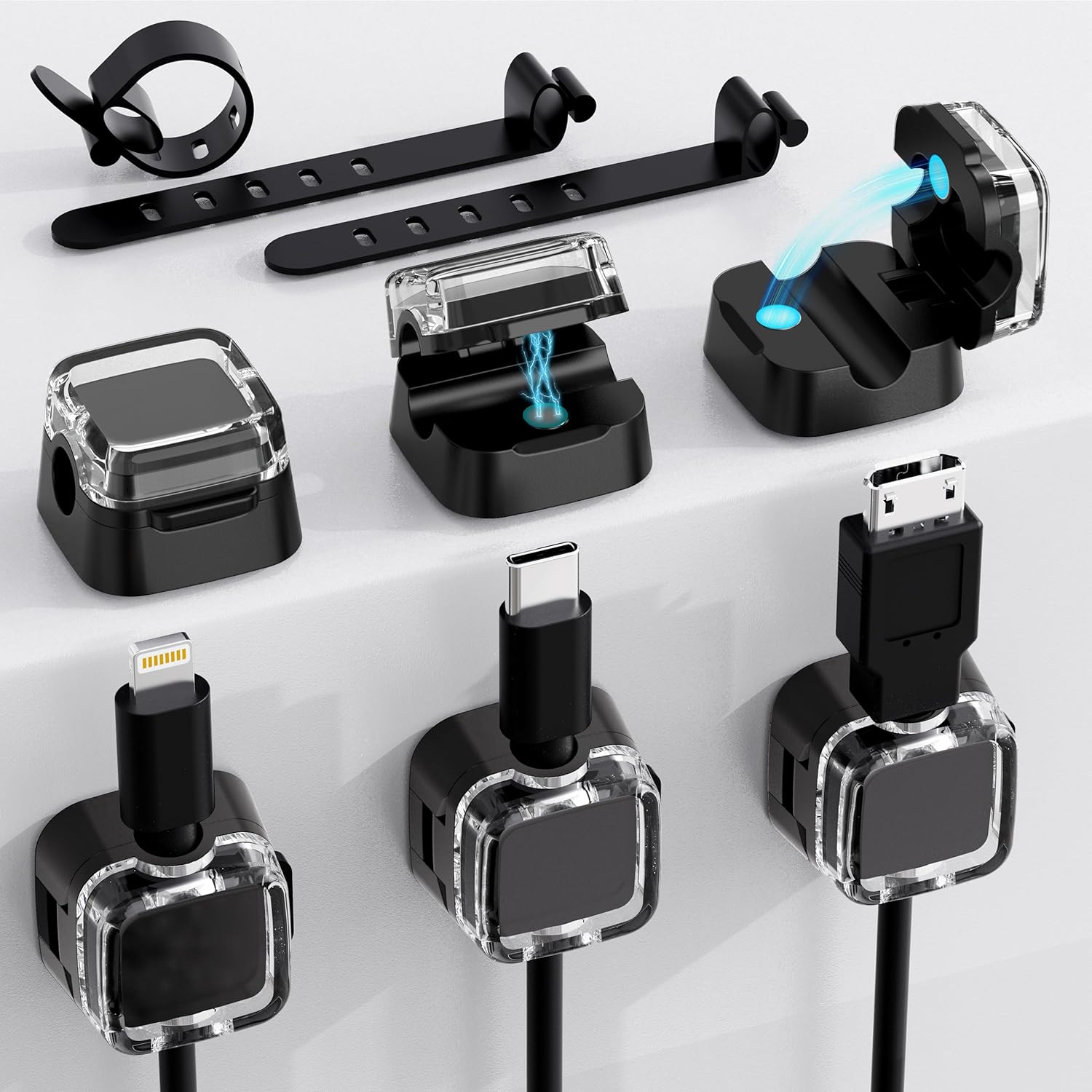 Organizer uchwyt na kable magnetyczny regulowany samoprzylepny MHYALUDO 6 szt.