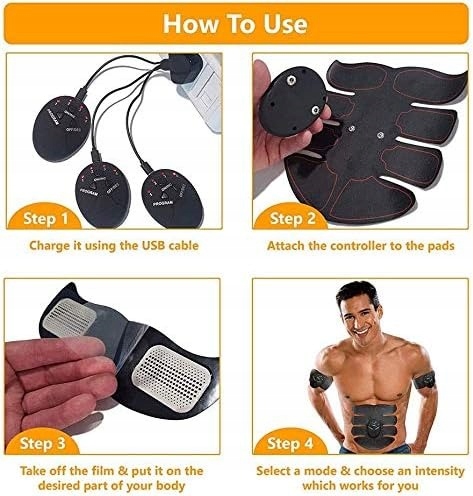 Ten elektrostymulator mięśni EMS wykorzystuje technologię elektrycznej stymulacji mięśni do uzyskania efektów bez wizyty na siłowni.
