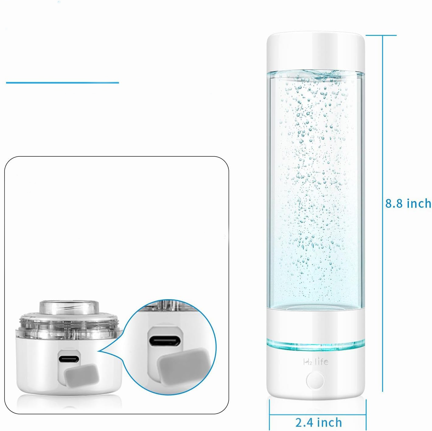 Jonizator wody posiada odłączane elementy – pokrywkę i podstawę – co ułatwia czyszczenie. Lekka konstrukcja i pojemność 320 ml (10,8 oz) sprawiają, że jest idealna do podróży, pieszych wędrówek, pływania, fitnessu i innych aktywności na świeżym powietrzu. Zasilanie przez USB zapewnia wygodę użytkowania.
