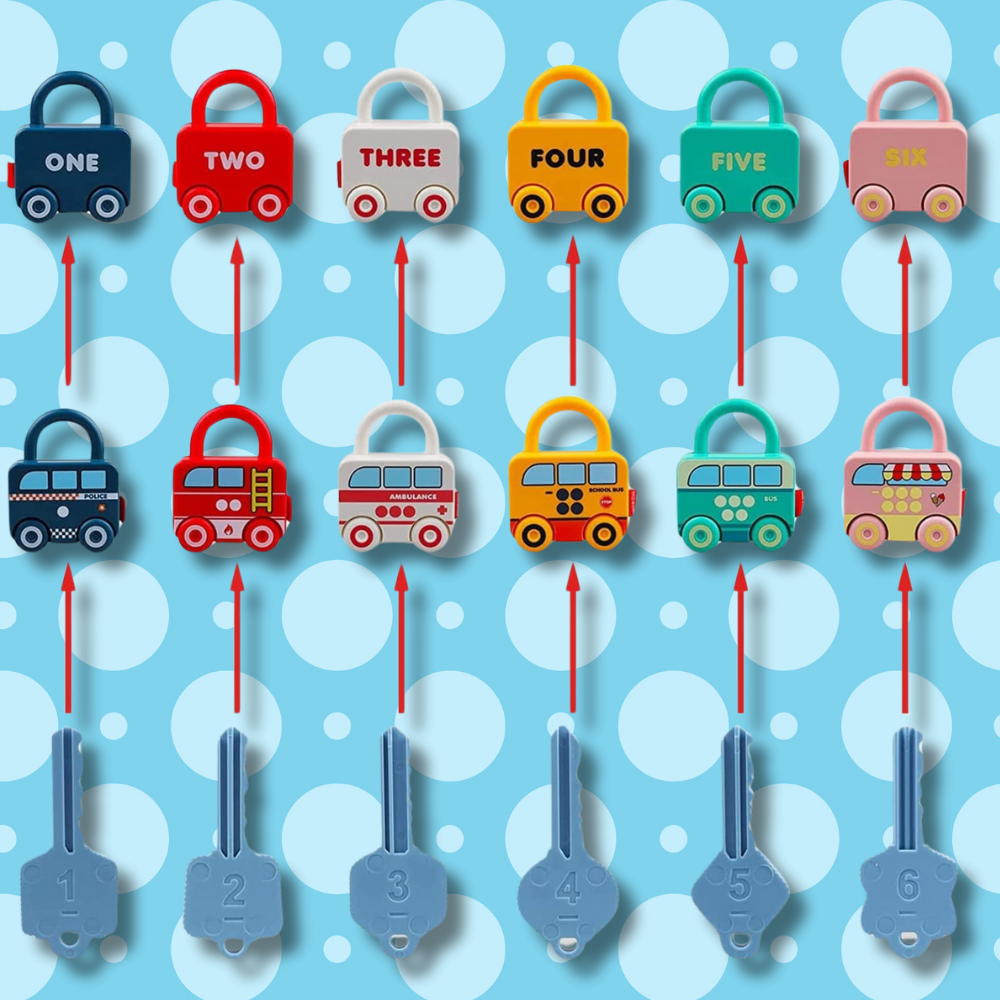 Zabawka Logiczna dla Dzieci – 6 Samochodów w Kształcie Kłódek z Kluczykiem!✨