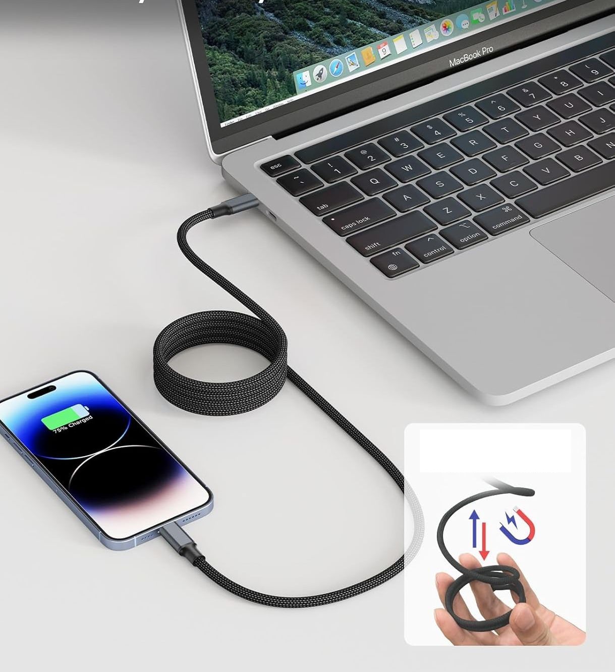 Wydajność ładowania to kolejny kluczowy atut. Kabel magnetyczny do MacBook i 15 Pro oferuje moc ładowania do 100W, co zapewnia szybkie, efektywne i bezpieczne ładowanie dla wszelkich urządzeń USB-C. Niezależnie od tego, czy potrzebujesz właśnie naładować laptopa, tablet czy smartfona, ten kabel sprawdzi się doskonale. Wysoka moc ładowania pozwala na błyskawiczne uzupełnienie energii, co jest kluczowe w sytuacjach awaryjnych czy w biegu, kiedy czas ma kluczowe znaczenie. Dodatkowo, solidny przewód wykonany w technologii nylonowej plecionki zapewnia mu nie tylko estetyczny wygląd, ale również wytrzymałość, która znacząco wydłuża jego żywotność.