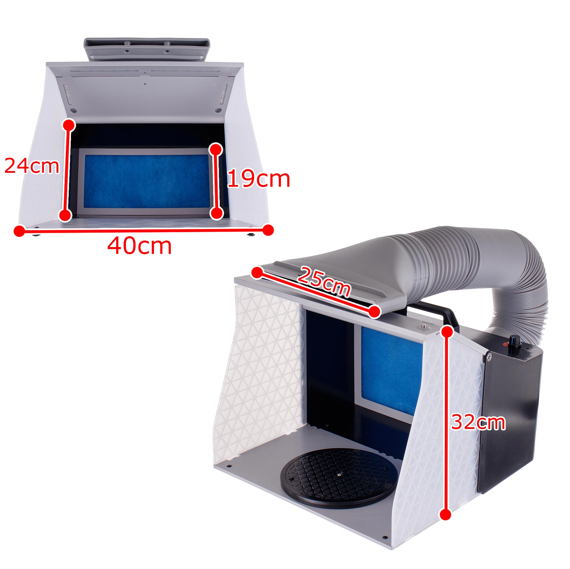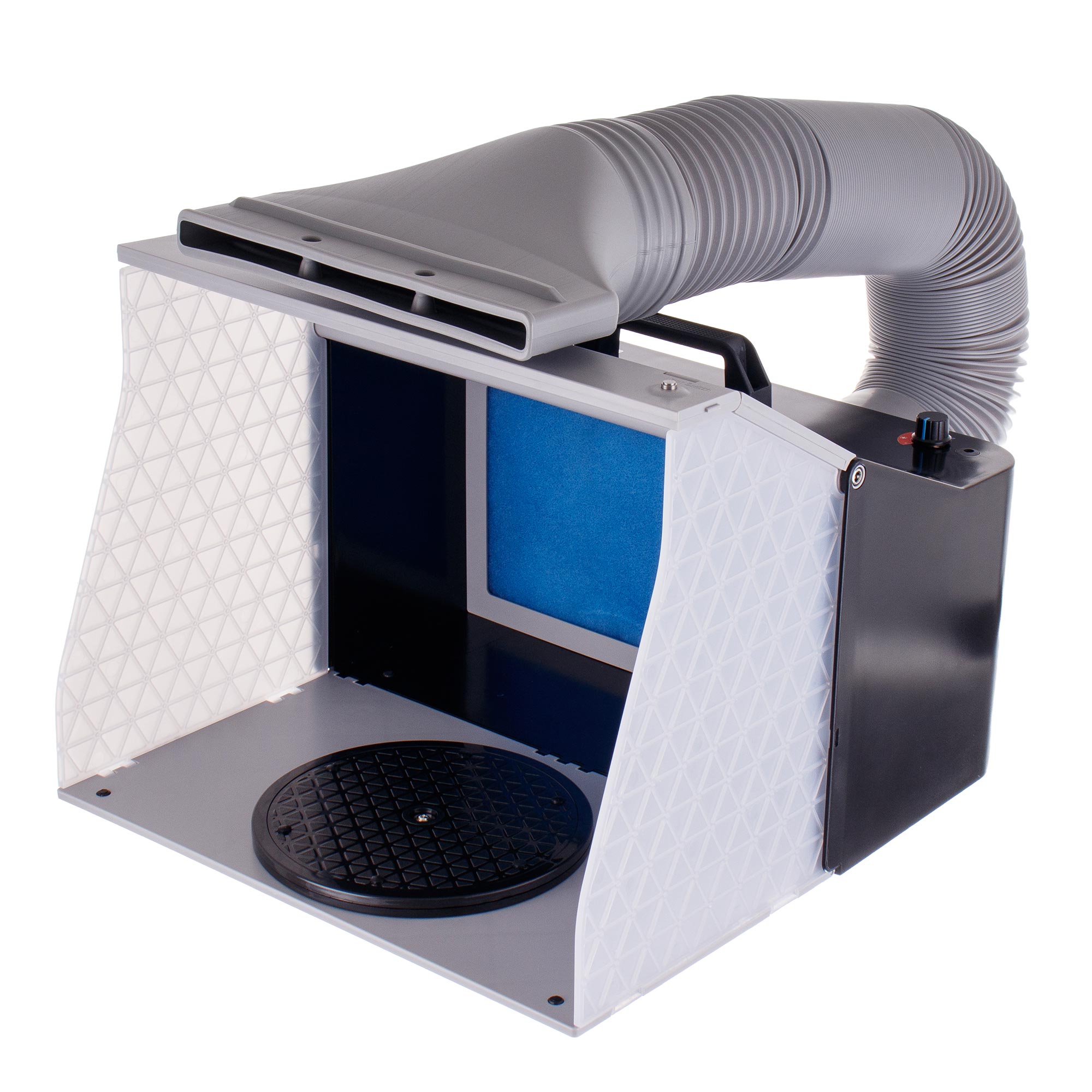 Kabina lakiernicza to kompaktowe, skuteczne i mobilne rozwiązanie do bezpiecznego malowania za pomocą aerografu. Niezastąpiona dla modelarzy, artystów, hobbystów i majsterkowiczów. Chroni użytkownika przed wdychaniem szkodliwych oparów i ogranicza rozprzestrzenianie się mgły lakierniczej, zapewniając komfort pracy w domu lub warsztacie.
