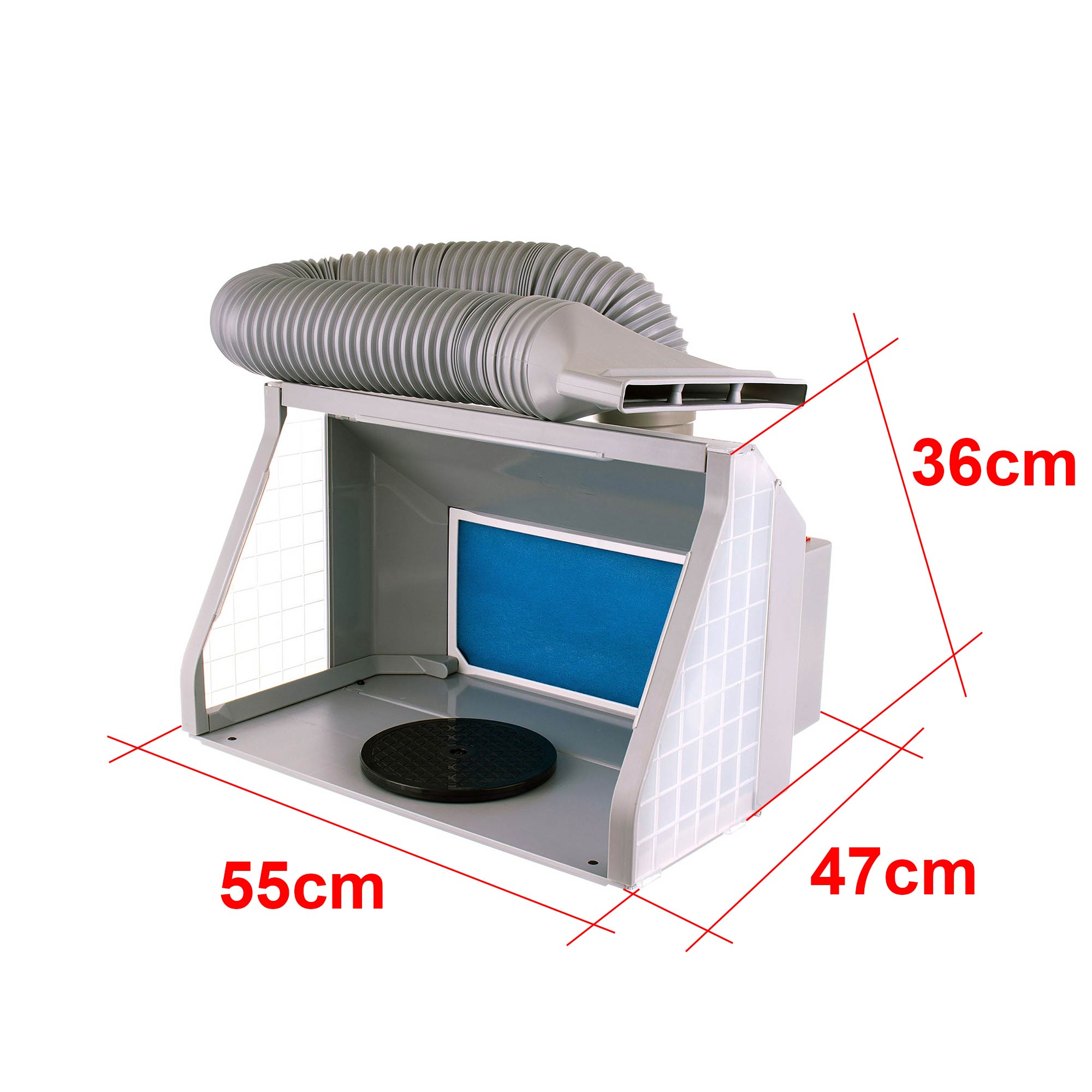 Professionally made painting booth designed for painting elements with mini spray guns or airbrushes.