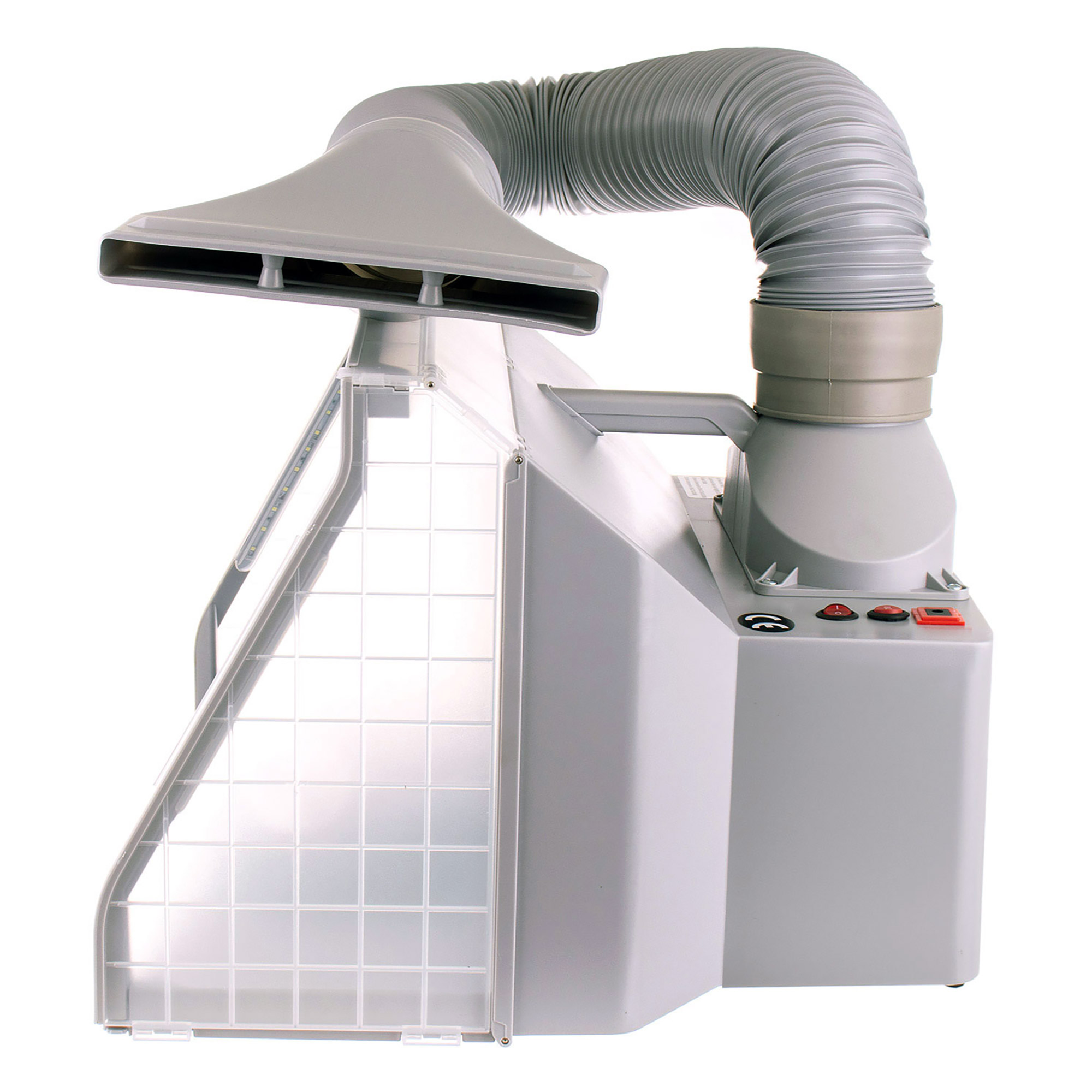Complete set with extraction hose, swivel stand, fan and lighting.