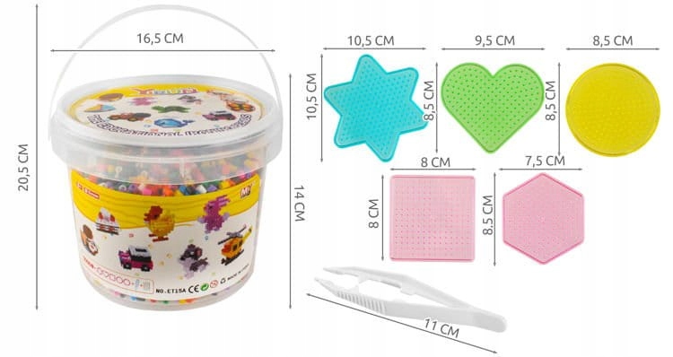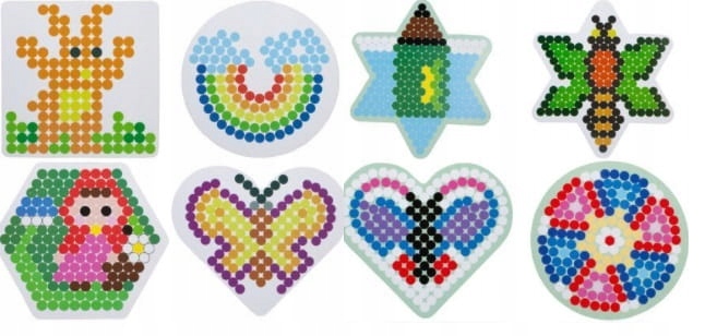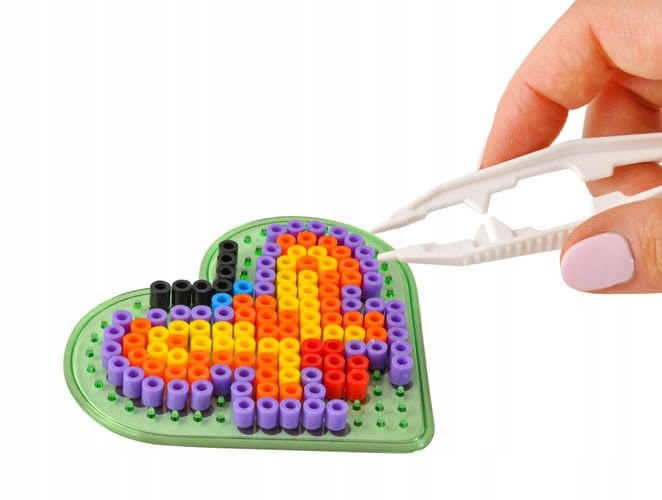 Daj upust swojej kreatywności i stwórz własne, kolorowe projekty układając koraliki na szablonach. Utrwalonymi prasowaniem koralikami można udekorować pokój, zrobić sobie z nich breloczek, zawieszkę lub tworzyć obrazy. Jeśli chcesz stworzyć biżuterię, naszyjniki i bransoletki możesz nawlec koraliki na nitkę. Zestaw rozwija zdolności motoryczne i koordynację ruchową dziecka. Dziecko może tworzyć z nich kolorowe postacie, pojazdy czy figury, a ograniczeniem jest tylko jego wyobraźnia.
