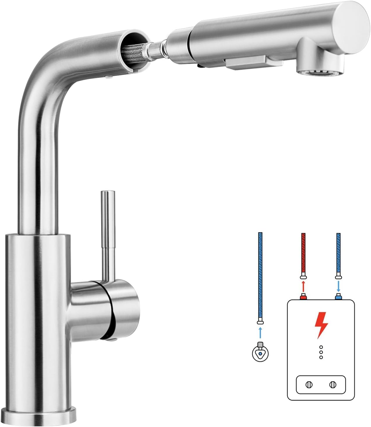 Duża przestrzeń: bateria w kształcie cyfry 7, wysokość kranu 27 cm, w porównaniu do zwykłych kranów zapewnia o 80% więcej przestrzeni. Niezależnie od wielkości naczynia, można je łatwo umieścić, co sprawia, że zlew kuchenny jest mniej zatłoczony.Funkcjonalność…