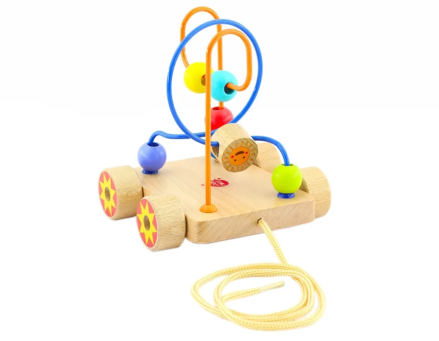 Labirynt przeplatanka na drewnianej podstawie z kółkami to doskonała zabawka dla każdego dziecka.