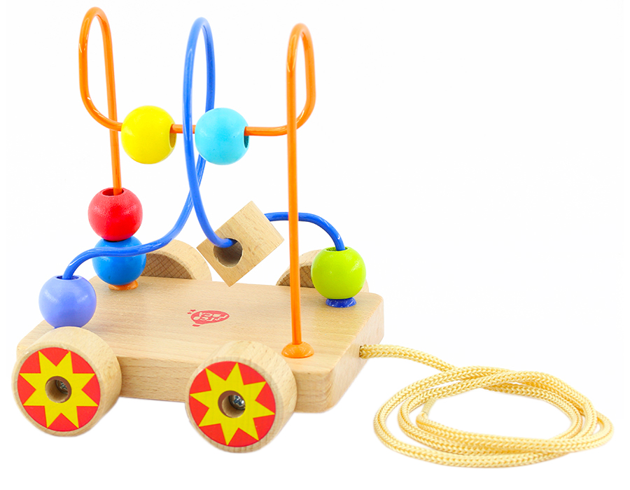 Drewniana przeplatanka na pewno przyciągnie uwagę dziecka, dzięki zastosowaniu dużej liczby kolorów zabawa gwarantowana przez długie godziny. Każdy maluch lubi drewniane zabawki, ponieważ rozwijają one postrzeganie oraz zdolności manualne i motoryczne, pozwalają poznawać nowe kształty, uczą określać i nazywać kolory. Labirynt umocowany jest na podstawie wyposażonej w kółka i dzięki zastosowanemu sznurkowi pełni również funkcję zabawki do ciągnięcia, co wspomaga rozwijanie tak zwanej motoryki dużej.