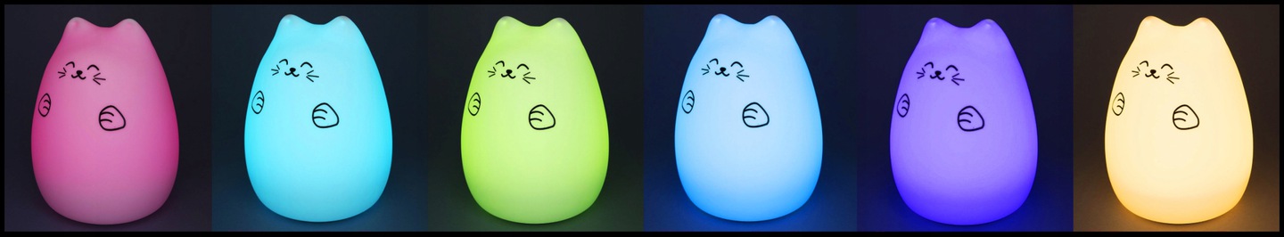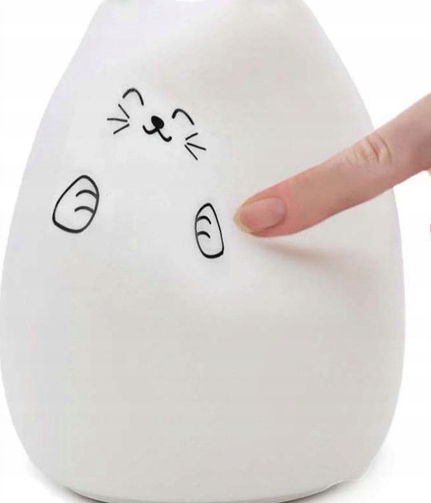 Aby kotek zmieniał kolory, po włączeniu lampki przyciskiem pod obudową i zapaleniu się ciepłego światła, wystarczy klepnąć kotka ręką, a kolory zaczną zmieniać się co 3 sekundy.