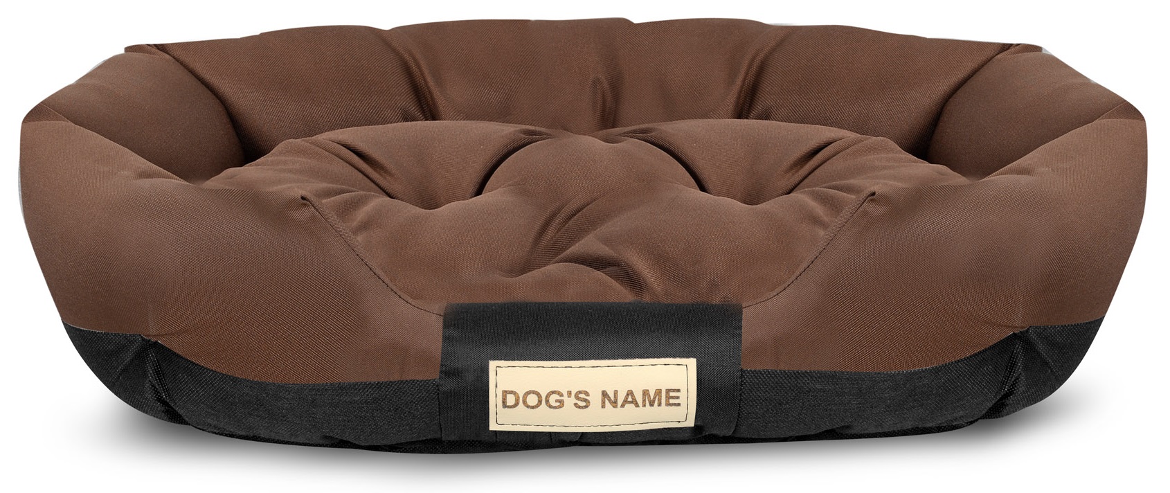 Wytrzymałe OWALNE wodoodporne legowisko dla psa w kolorze brązowym, PERSONALIZOWANE imieniem pupila!