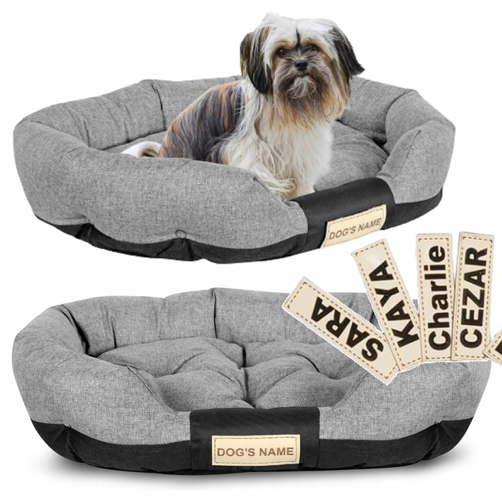 Wytrzymałe OWALNE wodoodporne legowisko dla psa w kolorze szarym, PERSONALIZOWANE imieniem pupila!