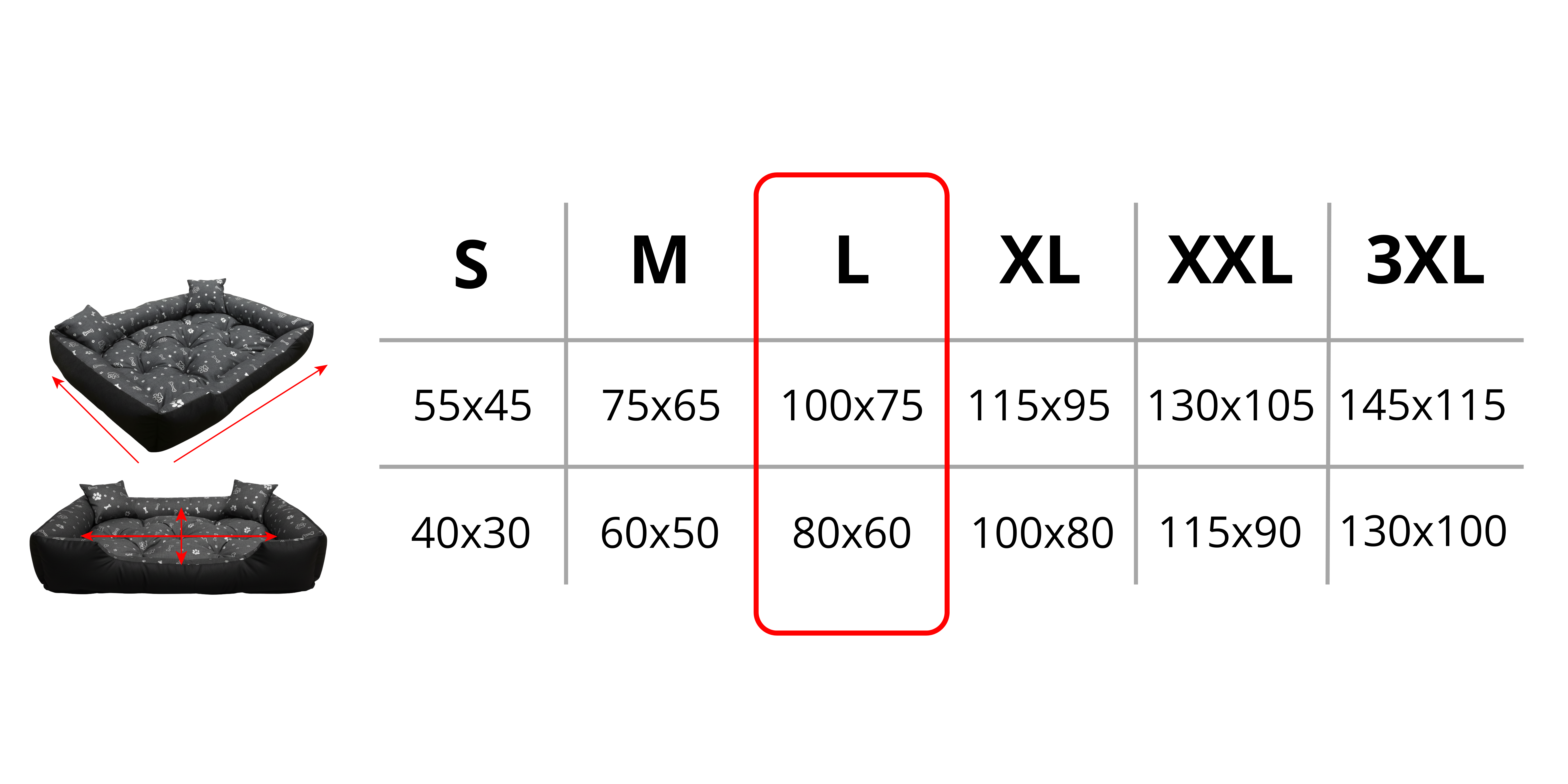 W naszej ofercie znajdziesz kilka rozmiarów legowiska PRESTIGE KOŚCI SREBRNE. Dzięki temu z powodzeniem dobierzesz model pasujący do Twojego pupila. Zaobserwuj w jaki sposób Twój zwierzak najchętniej odpoczywa i śpi. Jeżeli uwielbia wtulać się w ranty legowiska to potrzebuje ciaśniejszego legowiska, a jeżeli z zamiłowania śpi na środku jak król to zdecydowanie potrzebuje więcej miejsca :)
