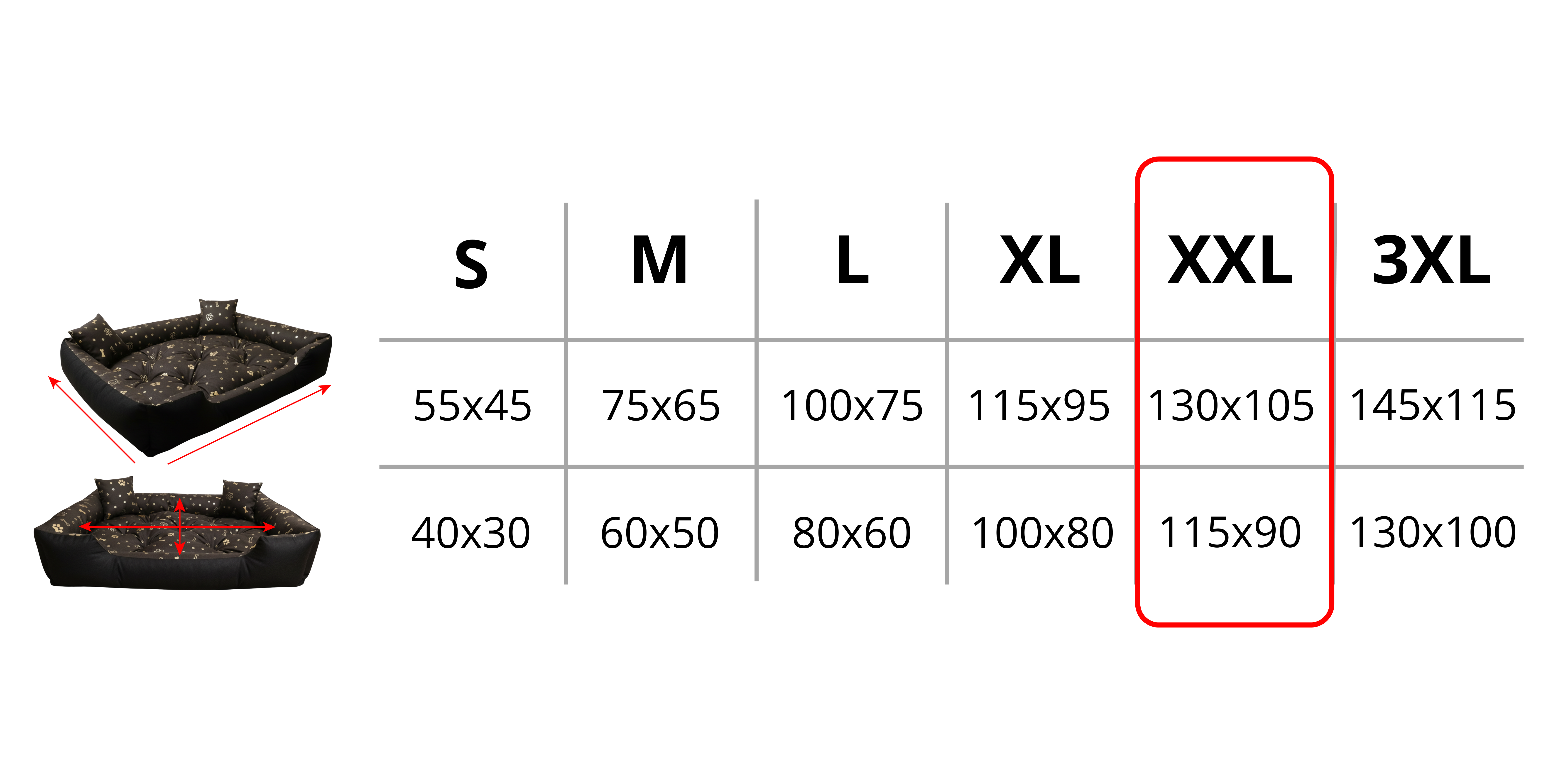 W naszej ofercie znajdziesz kilka rozmiarów legowiska PRESTIGE KOŚCI ZŁOTE. Dzięki temu z powodzeniem dobierzesz model pasujący do Twojego pupila. Zaobserwuj w jaki sposób Twój zwierzak najchętniej odpoczywa i śpi. Jeżeli uwielbia wtulać się w ranty legowiska to potrzebuje ciaśniejszego legowiska, a jeżeli z zamiłowania śpi na środku jak król to zdecydowanie potrzebuje więcej miejsca :)