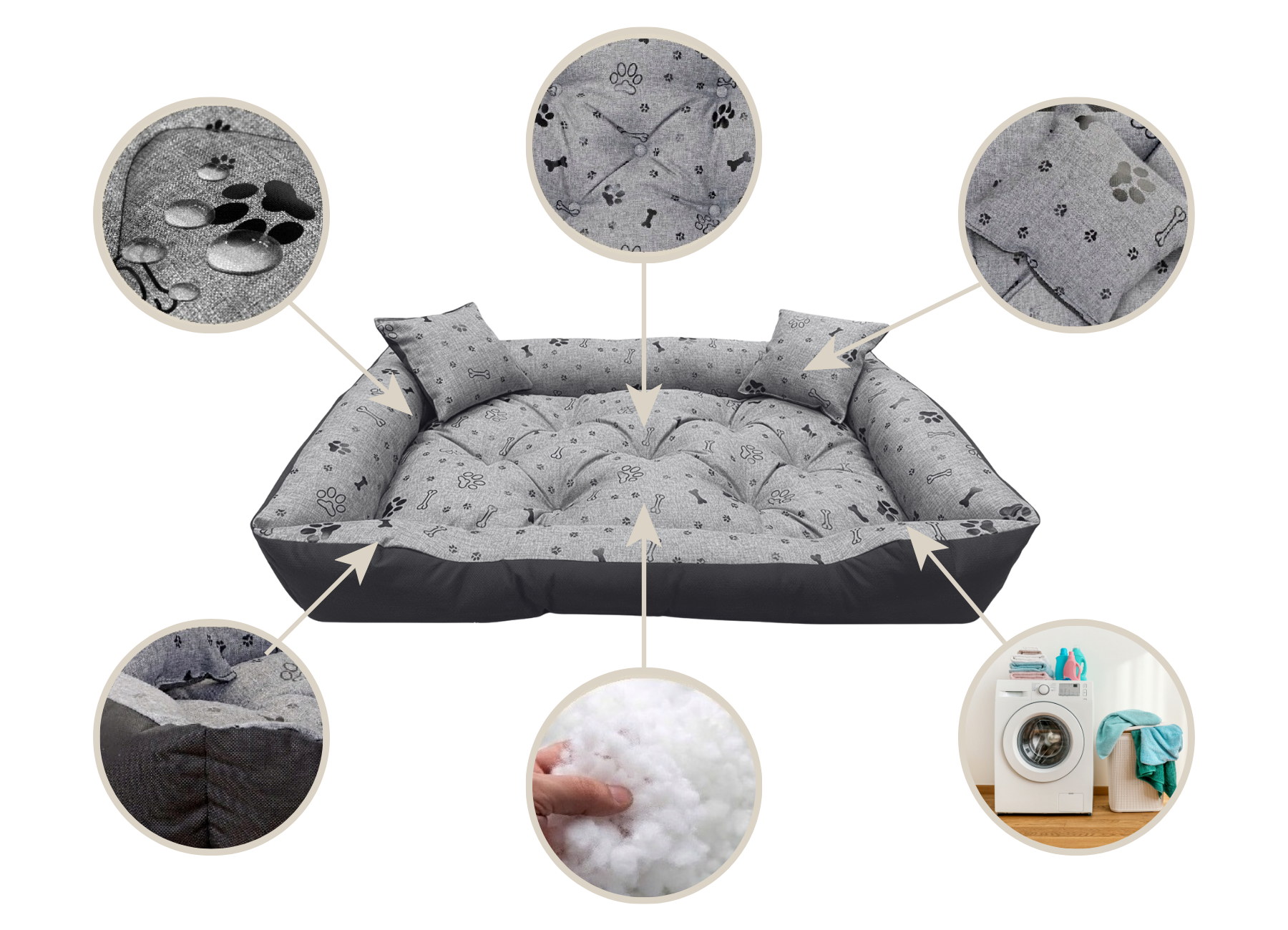 ✅ ANTYALERGICZNE: Właściciele psów uczulonych lub wrażliwych na alergie mogą być spokojni, ponieważ materiały legowiska są hipoalergiczne i nie powodują reakcji alergicznych u zwierzęcia.