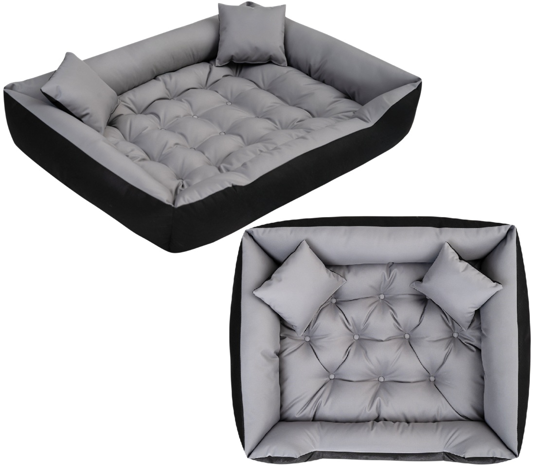 Wytrzymałe WODOODPORNE legowisko dla psa. Gwarantujemy, że legowisko nie tylko spodoba się Tobie, ale przede wszystkim Twojemu zwierzakowi. Materiały użyte do jego produkcji są solidne, praktyczne i co najważniejsze wytrzymałe. Jest to wyjątkowe i bardzo klasyczne legowisko z dwiema małymi poduszkami. Zapewniamy, że Twój pupil będzie cieszył się wyjątkowym miejscem do spania i odpoczynku!