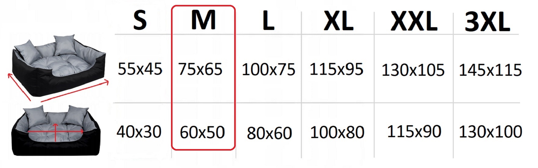 W naszej ofercie znajdziesz aż 6 rozmiarów legowiska ECCO. Dzięki temu dobierzesz idealnie pasujący rozmiar dla Twojego pupila. Zaobserwuj w jaki sposób Twój zwierzak najchętniej odpoczywa i śpi. Jeżeli uwielbia wtulać się w ranty legowiska to potrzebuje ciaśniejszego legowiska, a jeżeli z zamiłowania śpi na środku jak król to zdecydowanie potrzebuje więcej miejsca :)