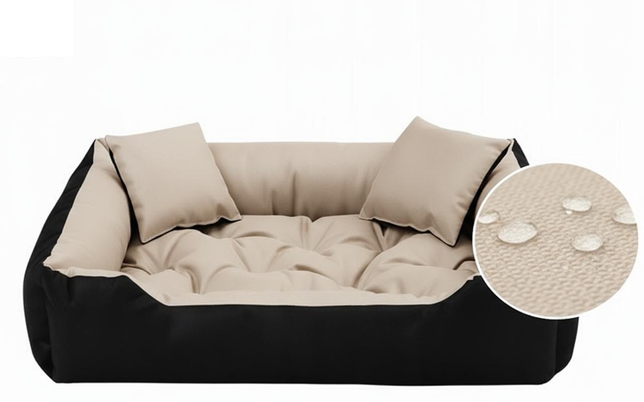 Wytrzymałe WODOODPORNE legowisko dla psa. Gwarantujemy, że legowisko nie tylko spodoba się Tobie, ale przede wszystkim Twojemu zwierzakowi. Materiały użyte do jego produkcji są solidne, praktyczne i co najważniejsze wytrzymałe. Jest to wyjątkowe i bardzo klasyczne legowisko z dwiema małymi poduszkami. Zapewniamy, że Twój pupil będzie cieszył się wyjątkowym miejscem do spania i odpoczynku!