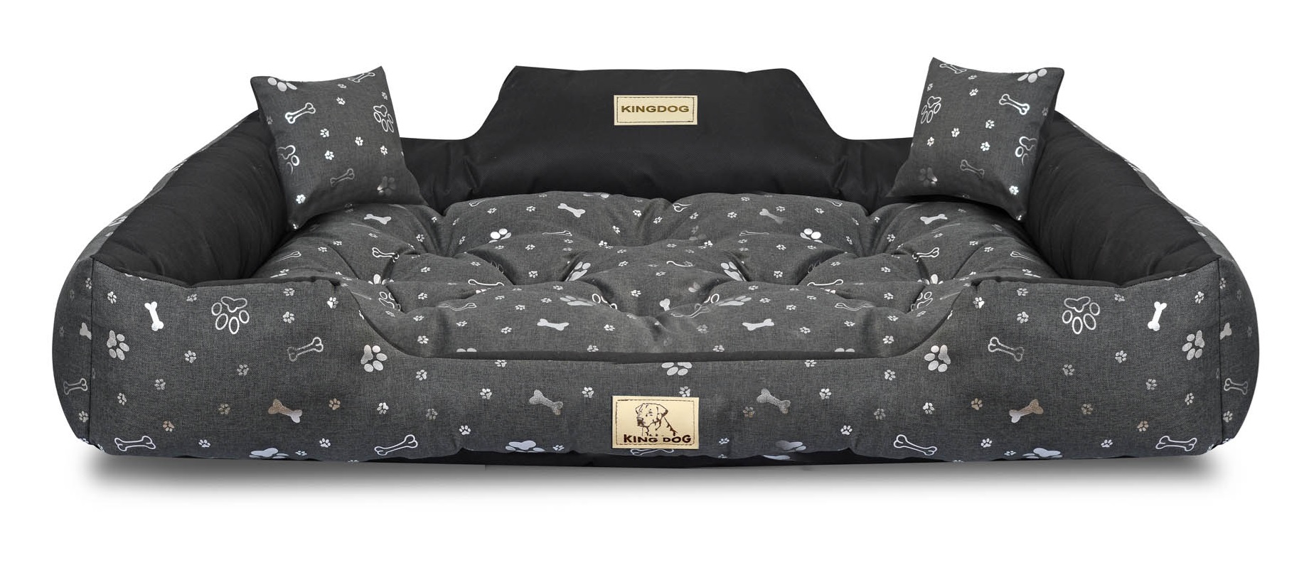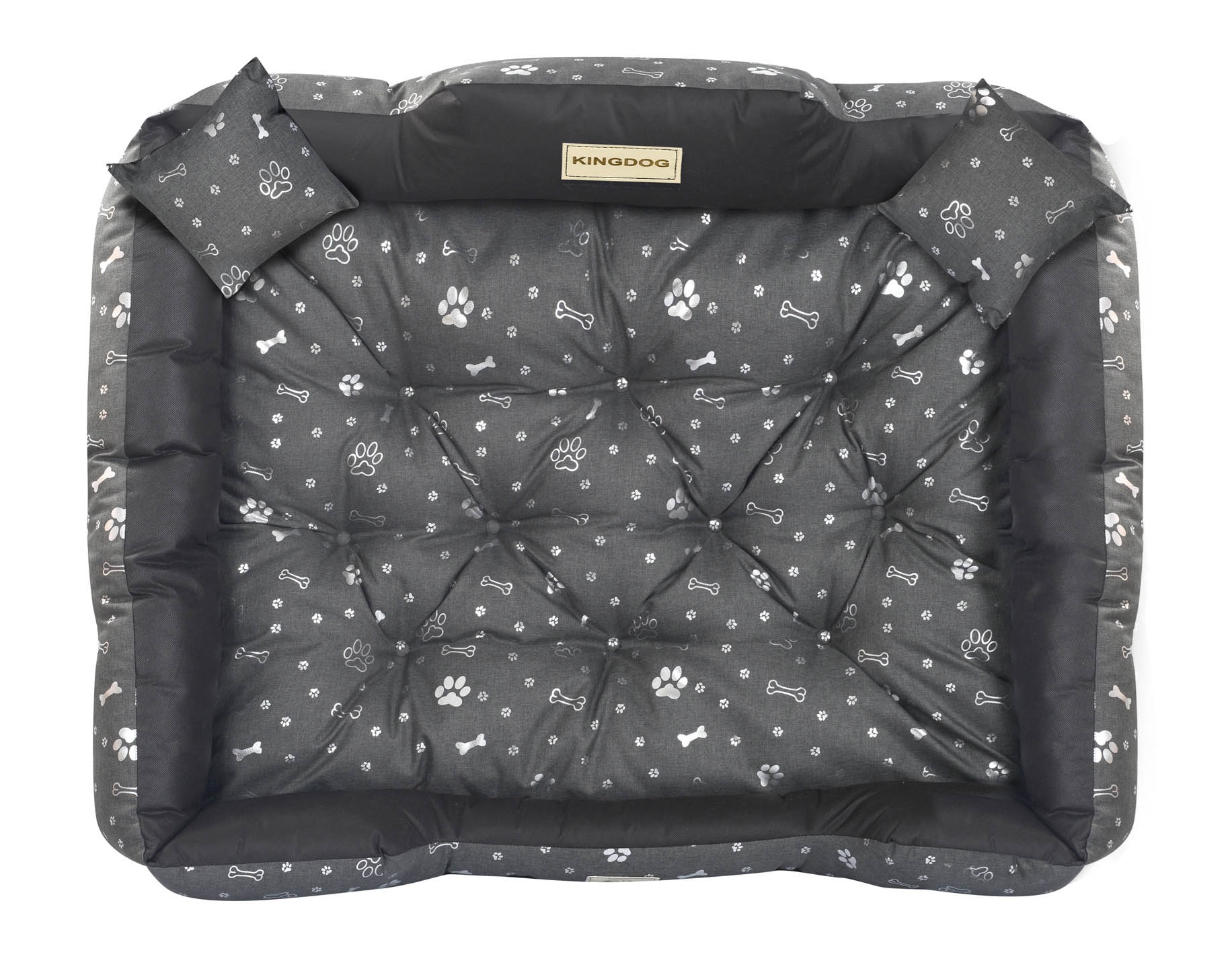 Wytrzymałe WODOODPORNE legowisko dla psa KINGDOG wzór KOŚCI SREBRNE, PERSONALIZOWANE imieniem pupila!