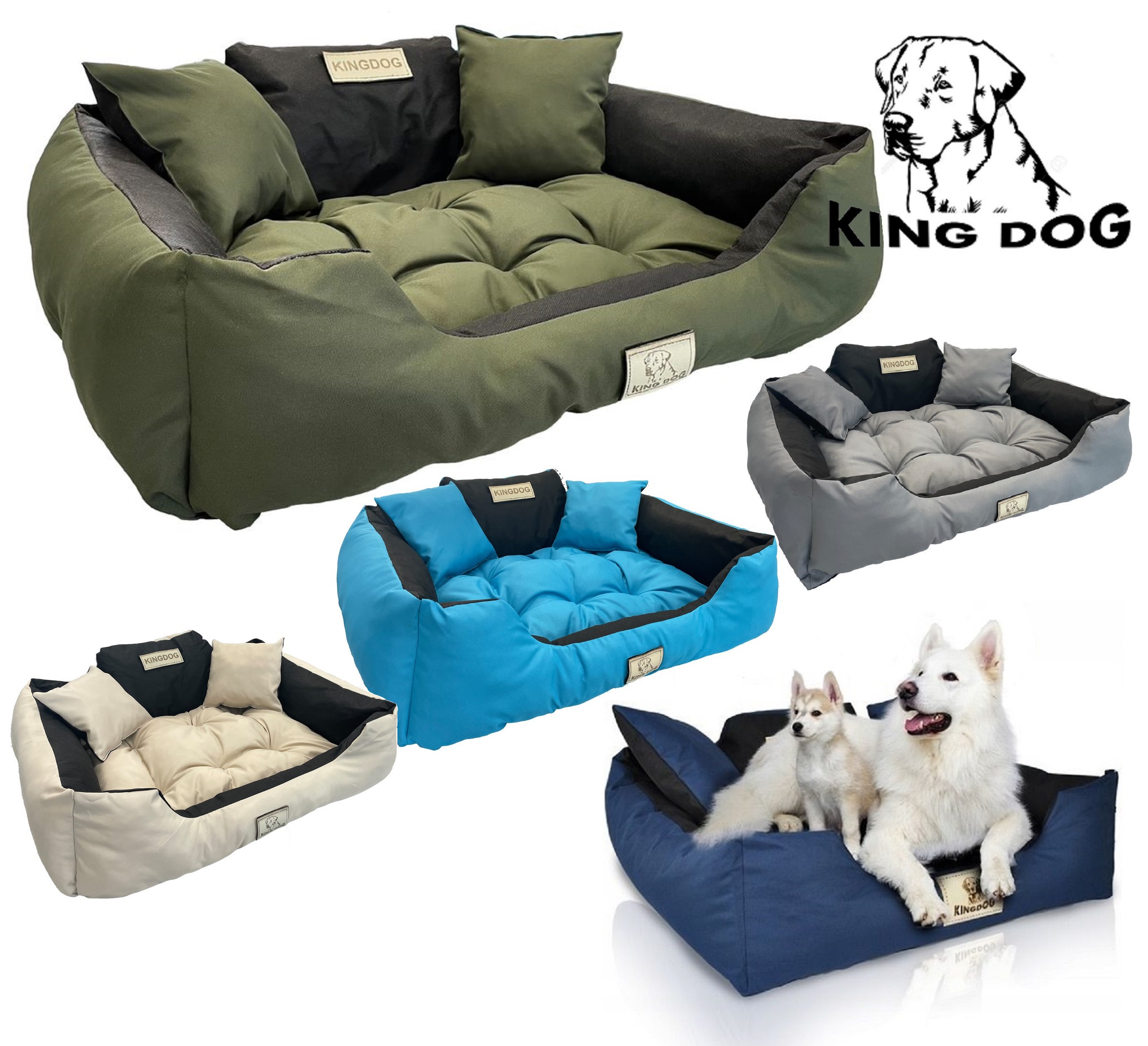 Wytrzymałe WODOODPORNE legowisko dla psa KINGDOG w kolorze ciemnozielonym, PERSONALIZOWANE imieniem pupila!