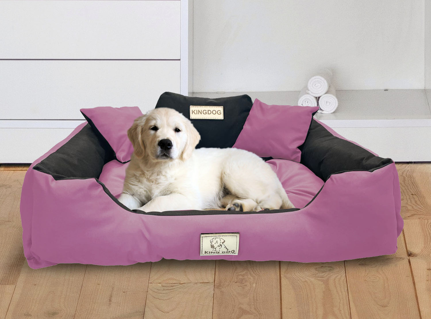 Wytrzymałe WODOODPORNE legowisko dla psa KINGDOG w kolorze różowym, PERSONALIZOWANE imieniem pupila!