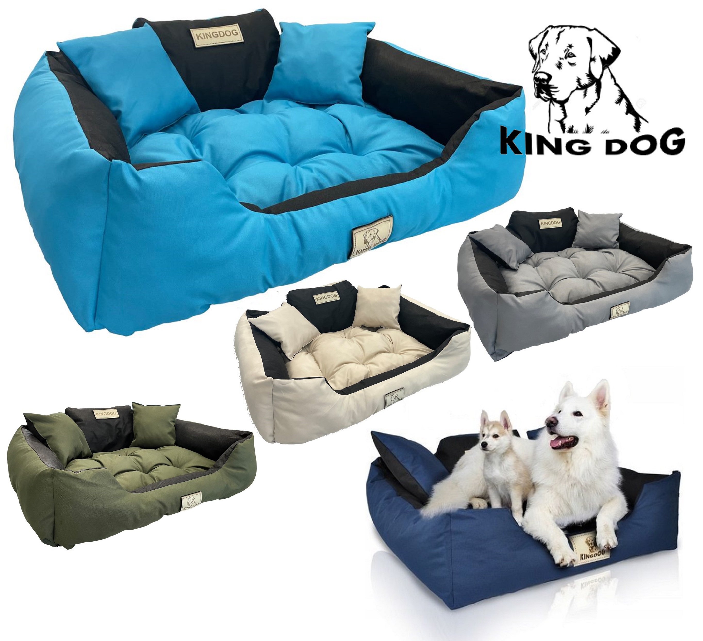 Wytrzymałe WODOODPORNE legowisko dla psa KINGDOG w kolorze niebieskim, PERSONALIZOWANE imieniem pupila!