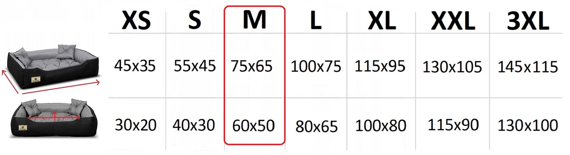 W naszej ofercie znajdziesz aż 7 rozmiarów legowiska PRESTIGE. Dzięki temu dobierzesz idealnie pasujący rozmiar dla Twojego pupila. Zaobserwuj w jaki sposób Twój zwierzak najchętniej odpoczywa i śpi. Jeżeli uwielbia wtulać się w ranty legowiska to potrzebuje ciaśniejszego legowiska, a jeżeli z zamiłowania śpi na środku jak król to zdecydowanie potrzebuje więcej miejsca :)