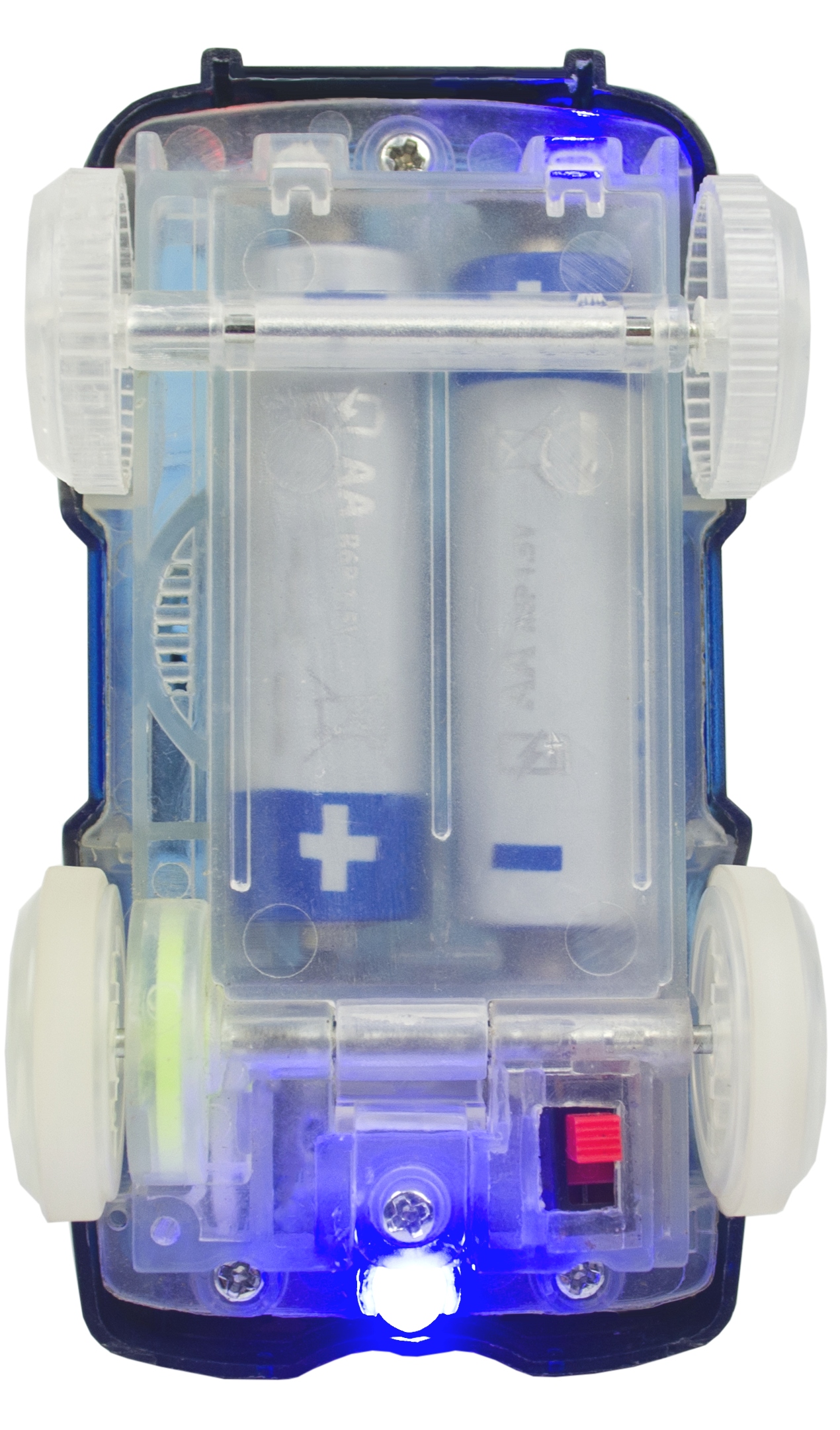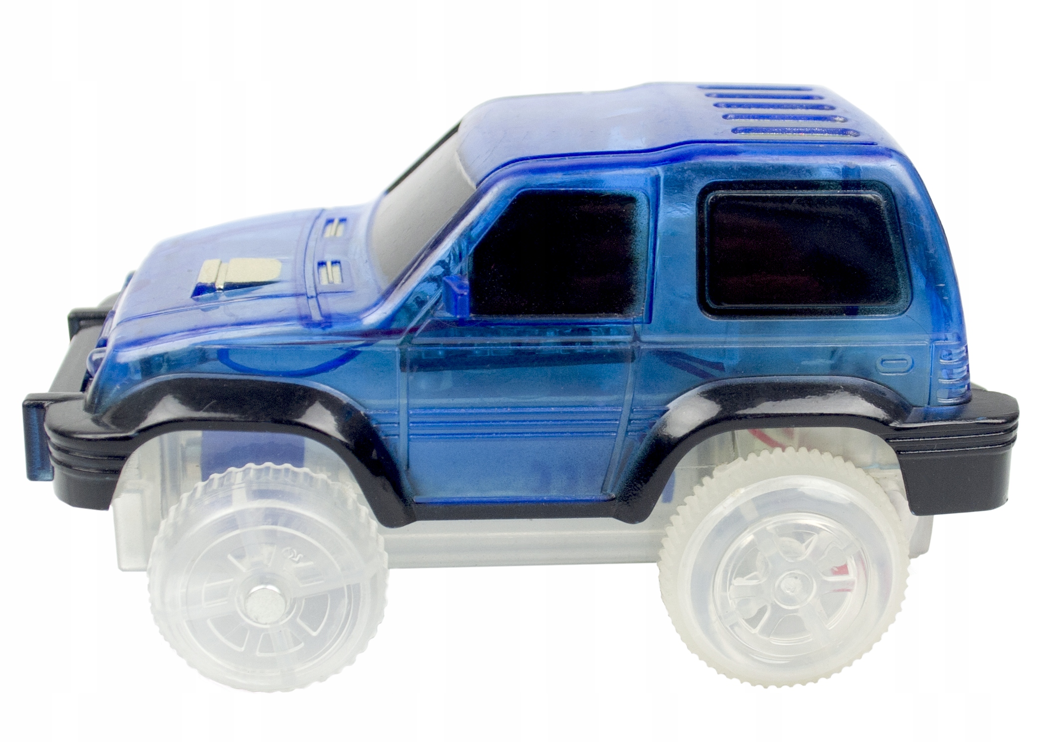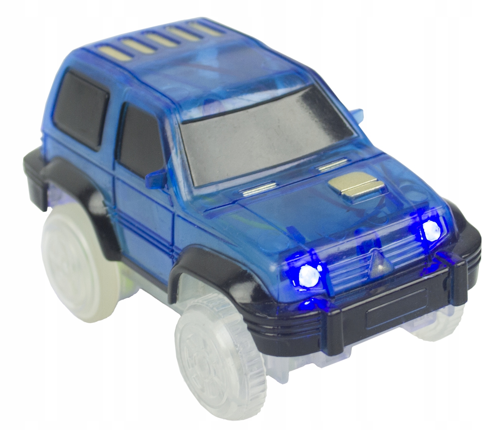 Światełka umieszczone z tyłu podwozia oraz w przednich lampach świecą naprzemiennie w dwóch kolorach: niebieskim i czerwonym. Ten wspaniały pojazd ma moc! Po uruchomieniu osiąga zawrotną prędkość, zapalają się przednie i tylne migające diody, które dają niesamowity efekt przy wyłączonym świetle w pomieszczeniu.