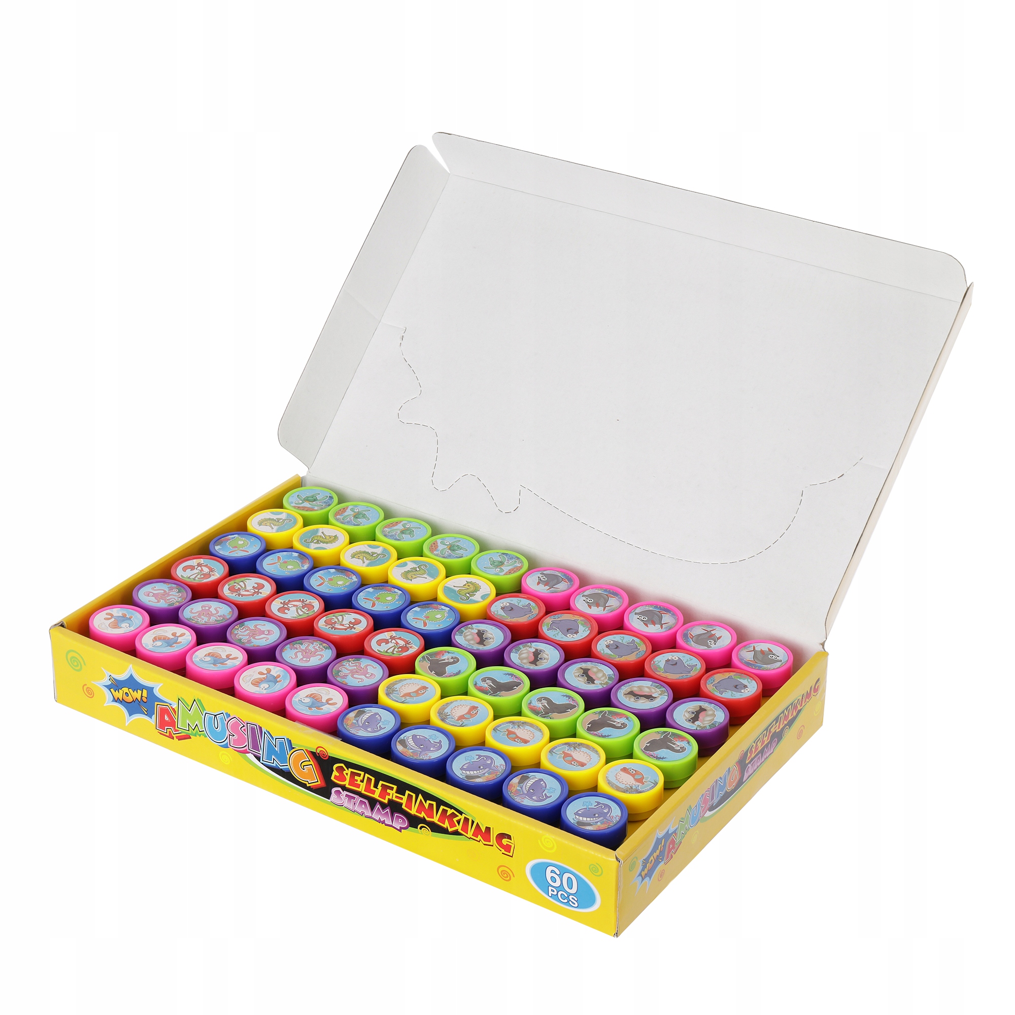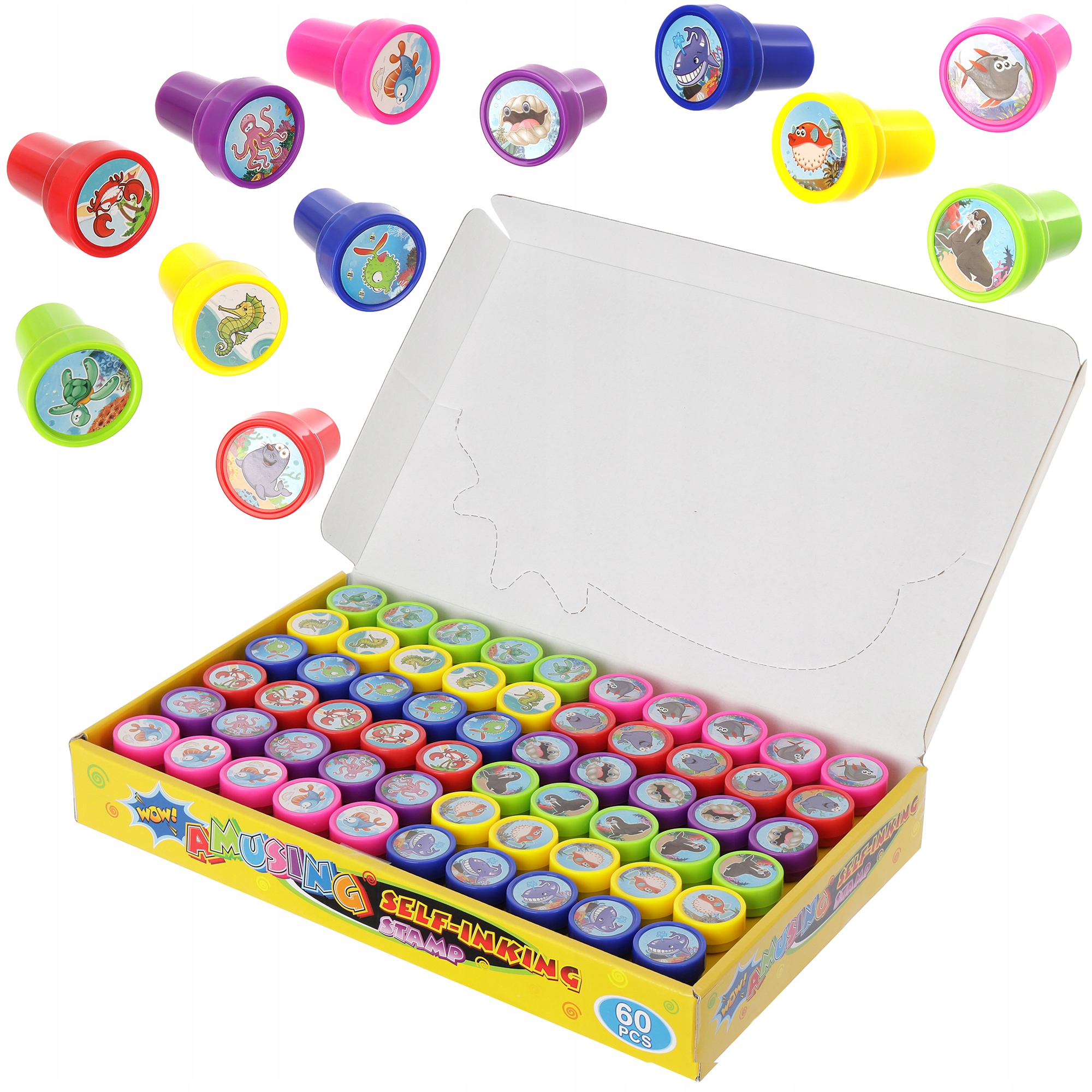 Zestaw 60 stempelków jest dedykowany zarówno młodszym jak i starszym dzieciom. Pociechy w wieku szkolnym mogą użyć ich do dekorowania swoich zeszytów i notesów a maluchy potraktują to jako fantastyczną zabawę.