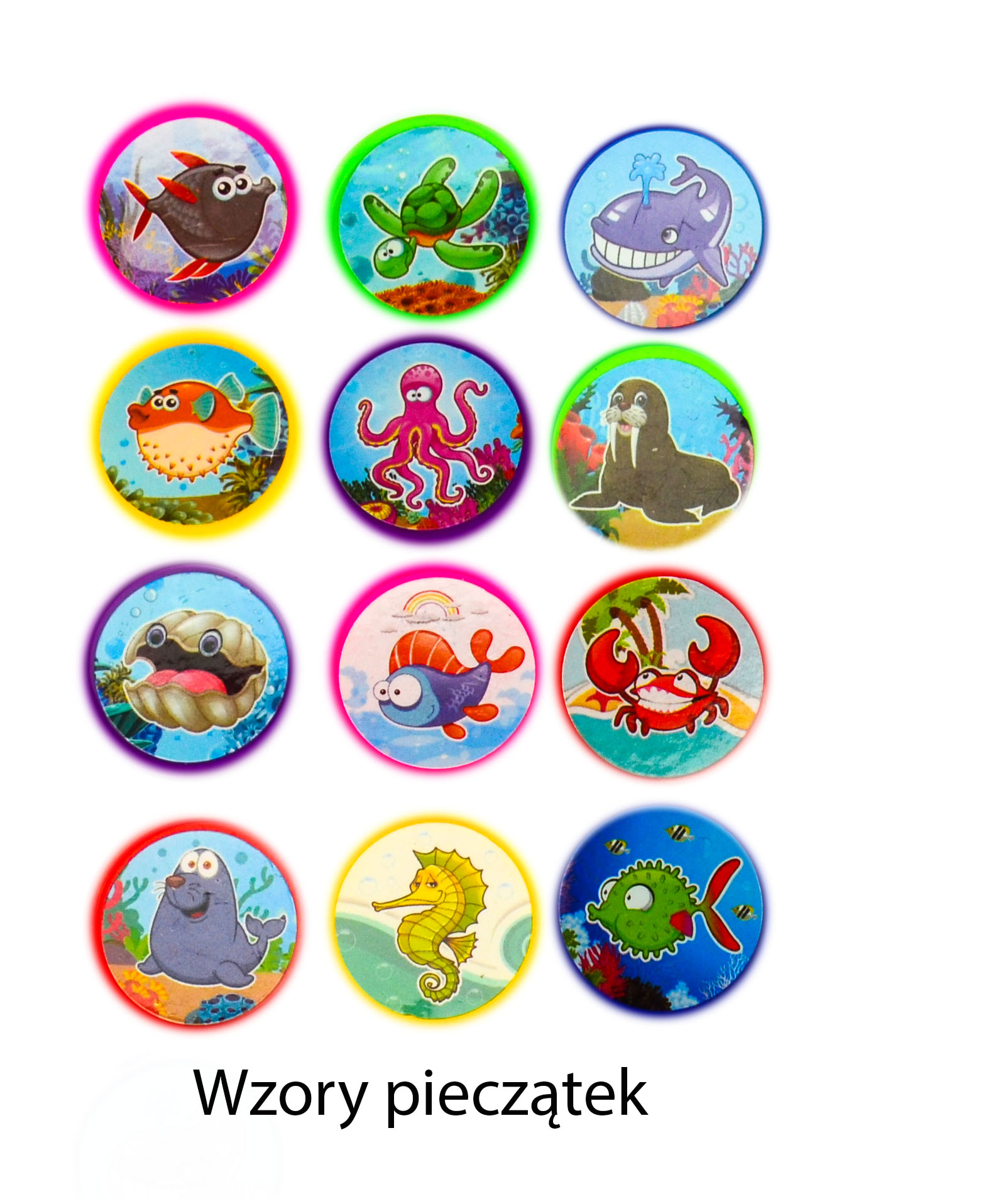 Dzięki temu, że na stempelkach znajdują się zwierzątka morskie, dziecko szybko nauczy się ich nazw. Jest to połączenie doskonałe – zabawa + nauka!