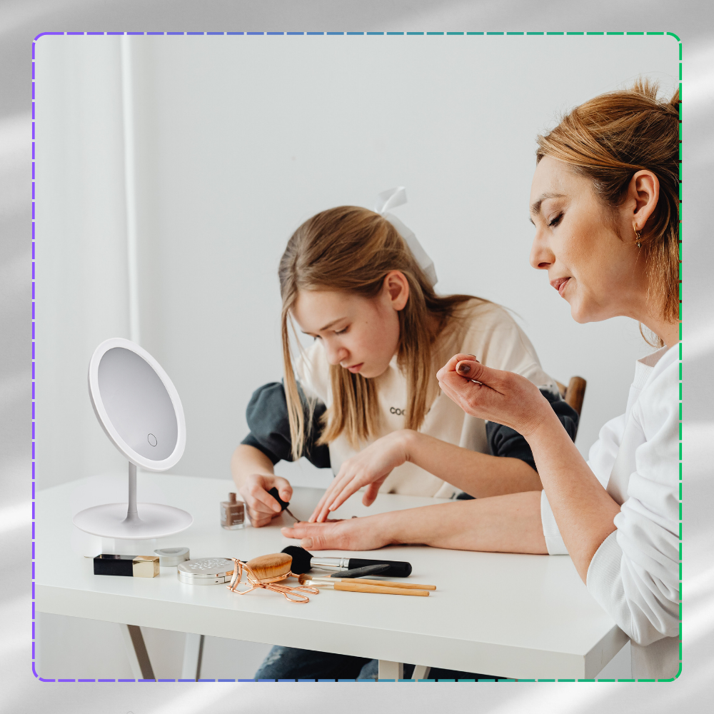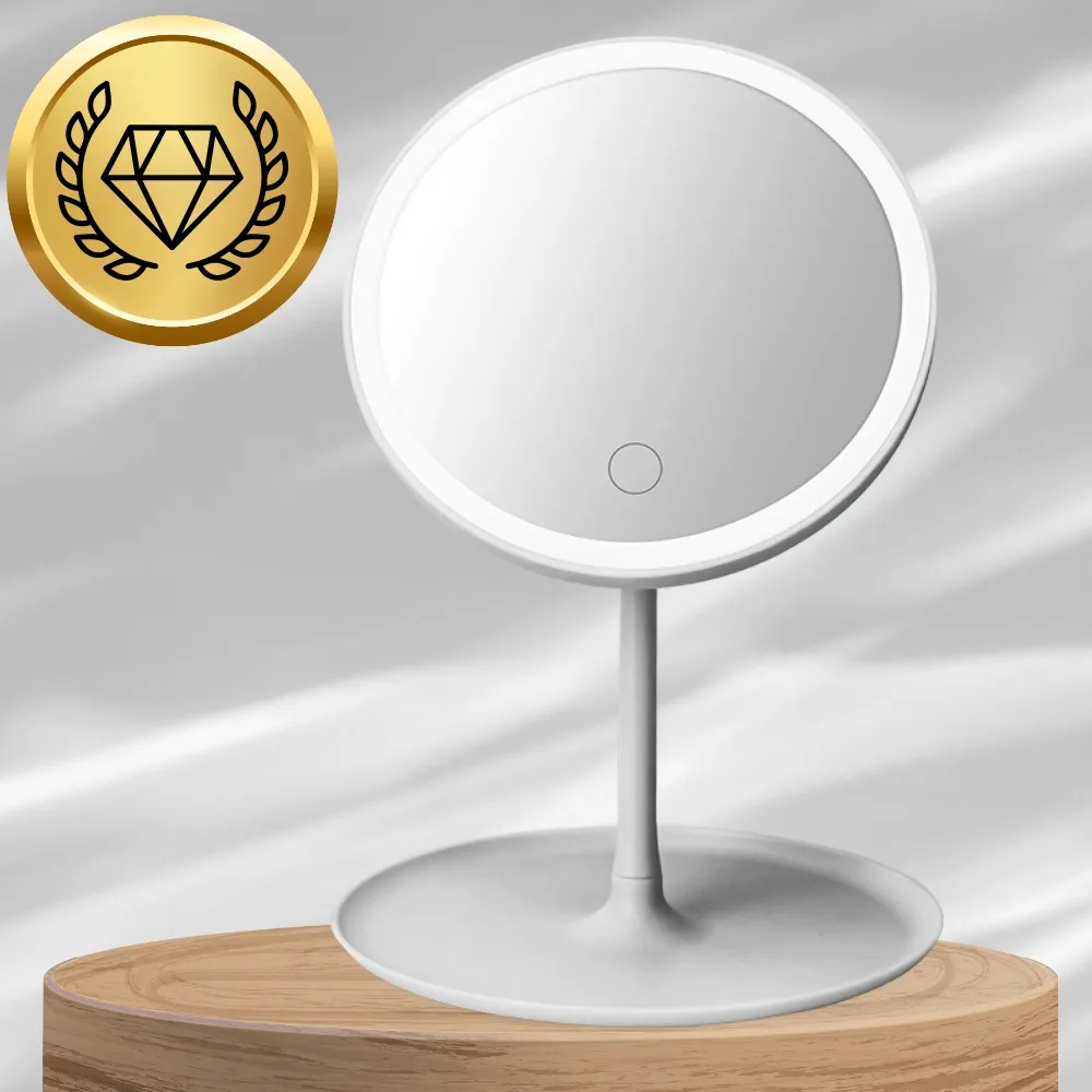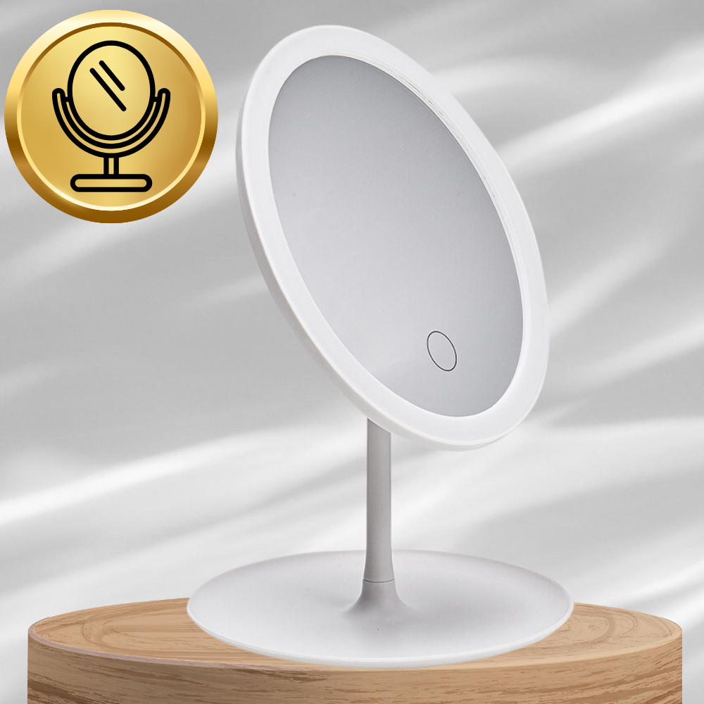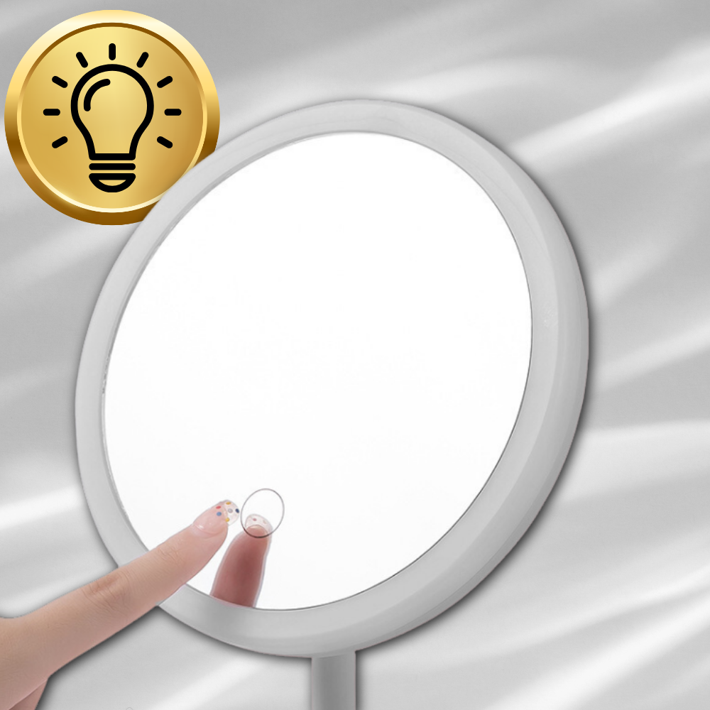 Wokół lustra zamontowane zostało oświetlenie ledowe, dzięki czemu możemy dokładnie zobaczyć swoje odbicie. Oświetlenie zapala się za pomocą przycisku umiejscowionego na lusterku. Posiada trzy stopnie światła barwa zimna, ciepła i neutralna. Podstawa lusterka jest lekko wgłębiona dzięki temu możemy ustawić tam swoje kosmetyki.