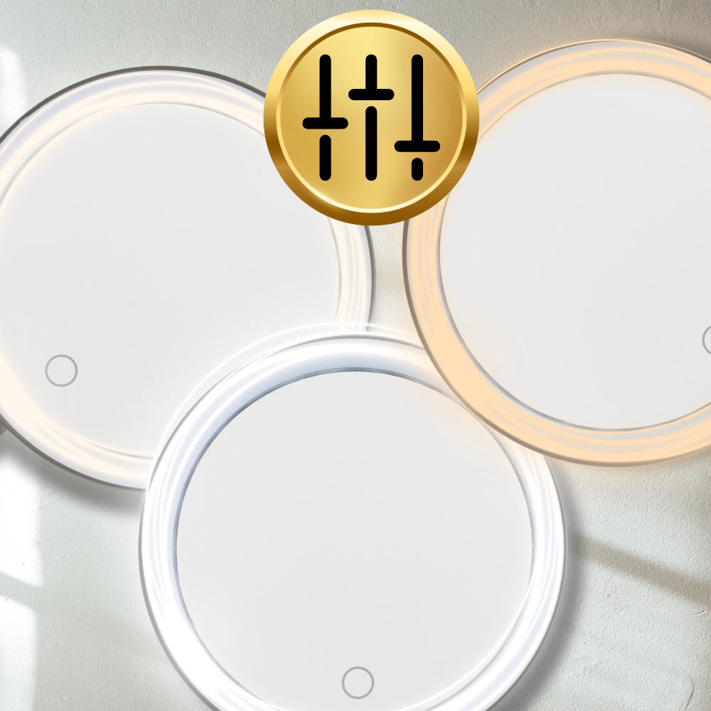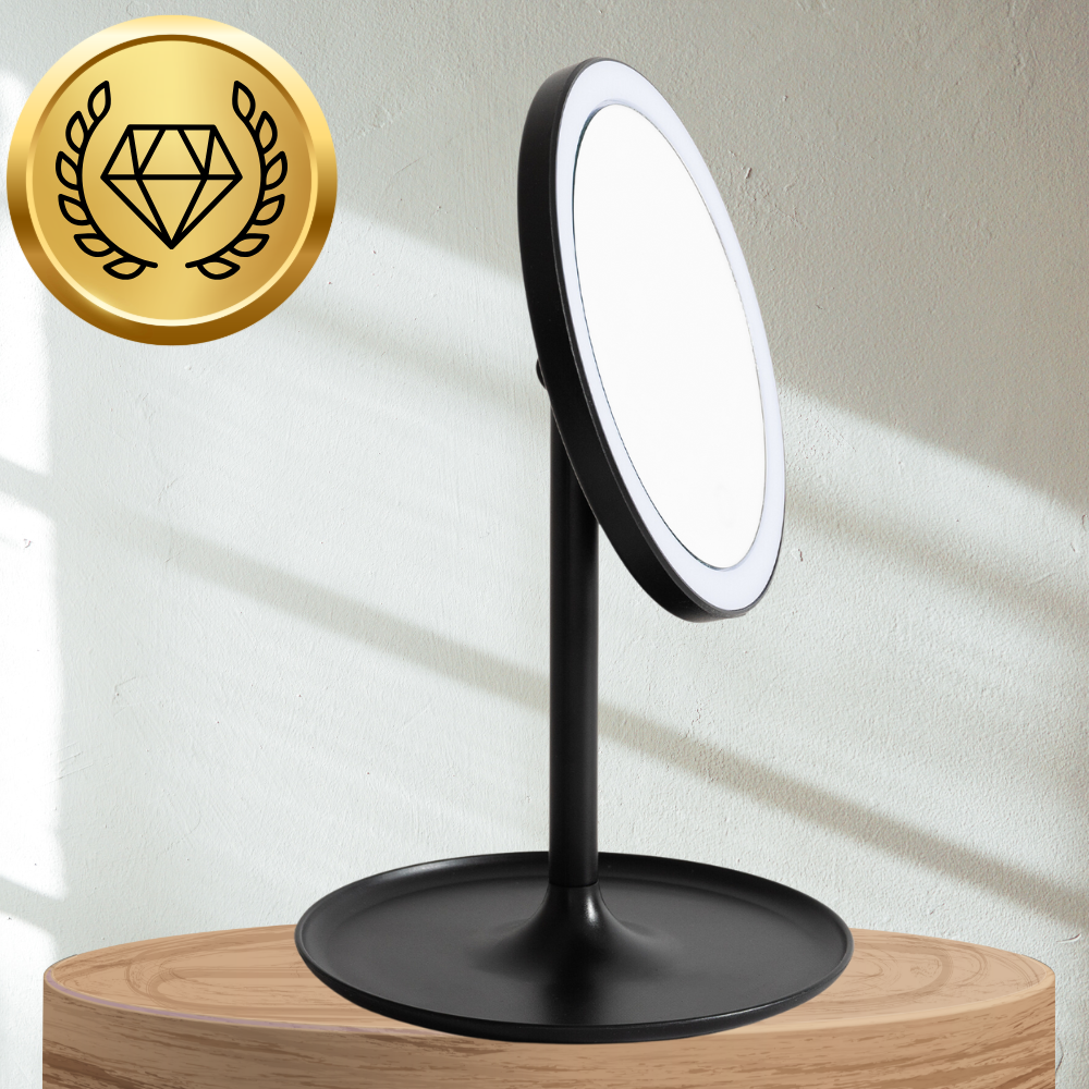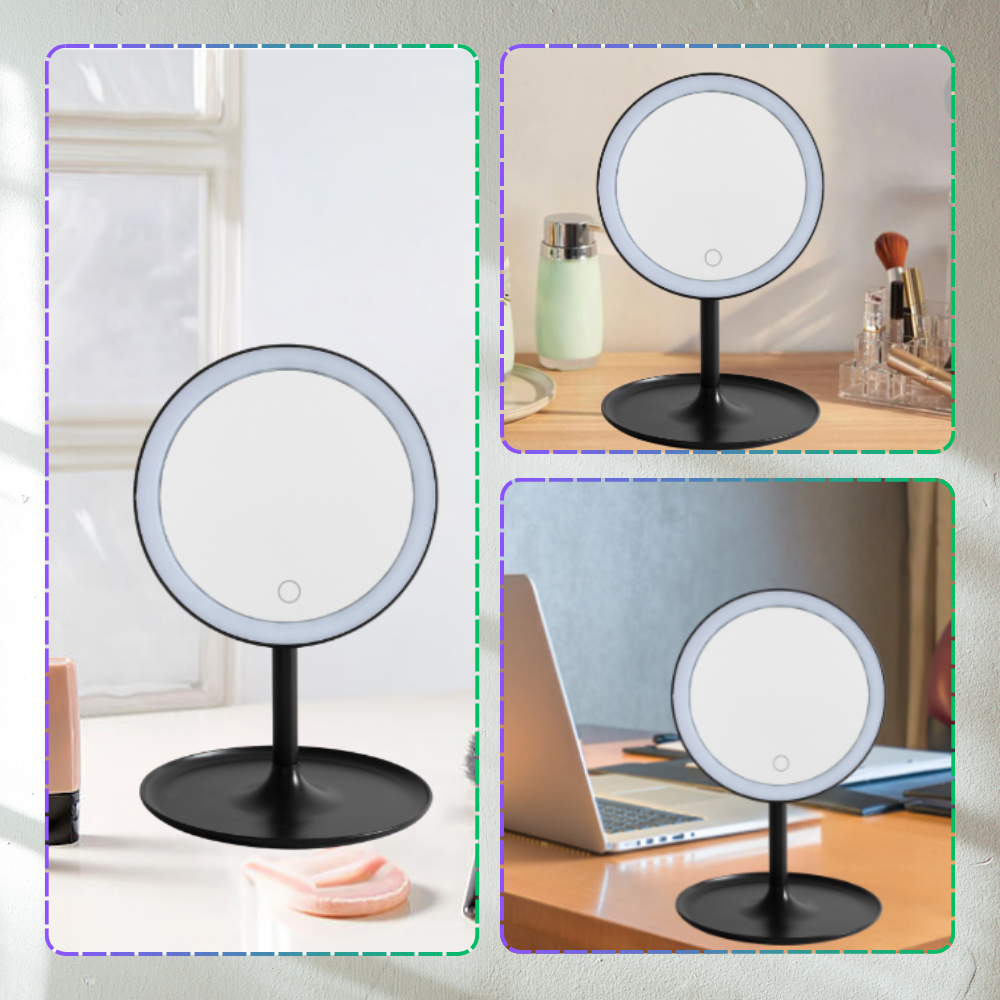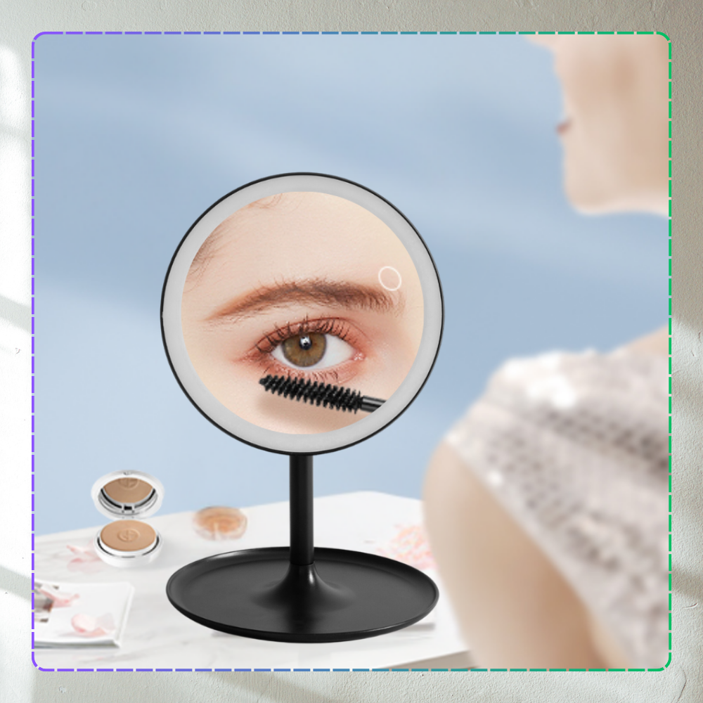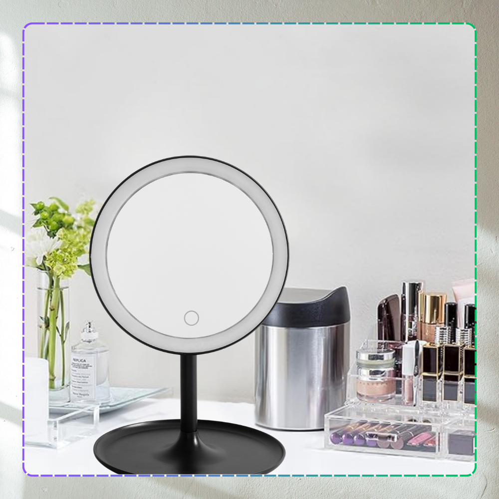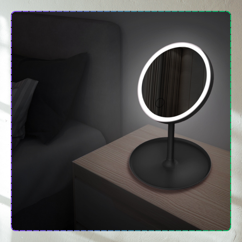 Wokół lustra zamontowane zostało oświetlenie ledowe, dzięki czemu możemy dokładnie zobaczyć swoje odbicie. Oświetlenie zapala się za pomocą przycisku umiejscowionego na lusterku. Posiada trzy stopnie światła barwa zimna, ciepła i neutralna. Podstawa lusterka jest lekko wgłębiona dzięki temu możemy ustawić tam swoje kosmetyki.