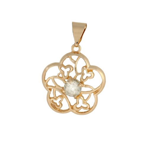 Zawieszka w kolorze złotym, kwiat z cyrkonią. * Warstwa złota naniesiona w metodzie electroplated * Pokryte jest w całości 4 - 8 mikronową warstwą 14K, 18K i 24K złota * Warstwa złocenia pokryta jest lakierem jubilerskim, który zabezpiecza powłokę…