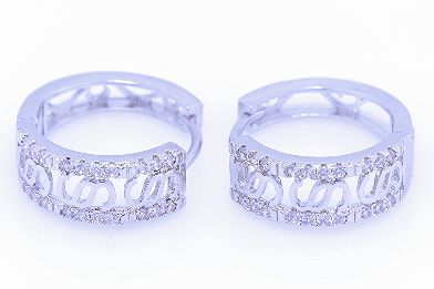 Kolczyki w kolorze srebrne, ażurowe , wysadzane cyrkoniami. * Warstwa srebra naniesiona w metodzie electroplated * Pokryte jest w całości 4 - 8 mikronową warstwą srebra pr. 925 * Warstwa srebrzenia pokryta jest lakierem jubilerskim, który zabezpiecza…