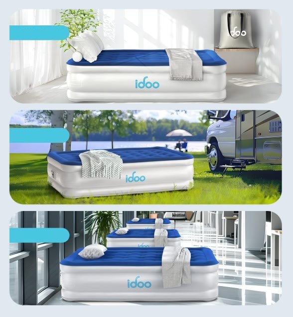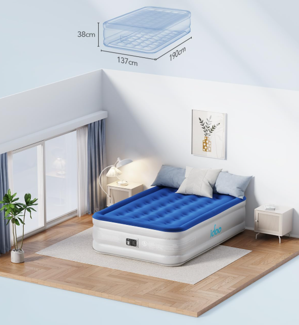 3 minuty szybkiego i łatwego napełniania/opróżniania: Wbudowana pompa napełnia/opróżnia materac powietrzny w ciągu 3-4 minut, aby osiągnąć pożądany poziom komfortu za pomocą jednego przycisku. Niezależnie od tego, czy lubisz twardy / miękki materac powietrzny, iDOO zapewni Ci ochronę.