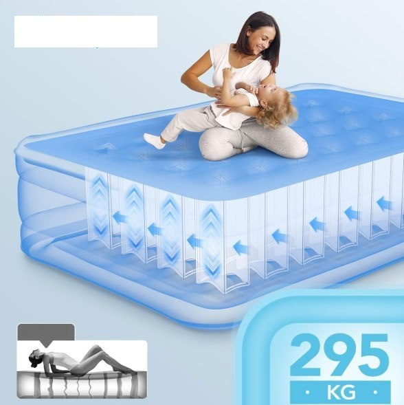 Wyjątkowe wsparcie głębokiego snu: 28 wewnętrznych cewek powietrznych zwiększa trwałość i wsparcie, utrzymując łóżko płaskie i twarde. Materac nie przechyli się ani nie obróci, jeśli usiądziesz na jego krawędzi lub rogu. Dzięki napompowanym wymiarom 190 * 137 * 38 cm i nośności 295 kg, nadaje się do przeprowadzek rodzin, zapalonych kamperów, łóżek gościnnych itp. Antypoślizgowe dno utrzymuje materac stabilnie i cicho, chroniąc jakość snu.