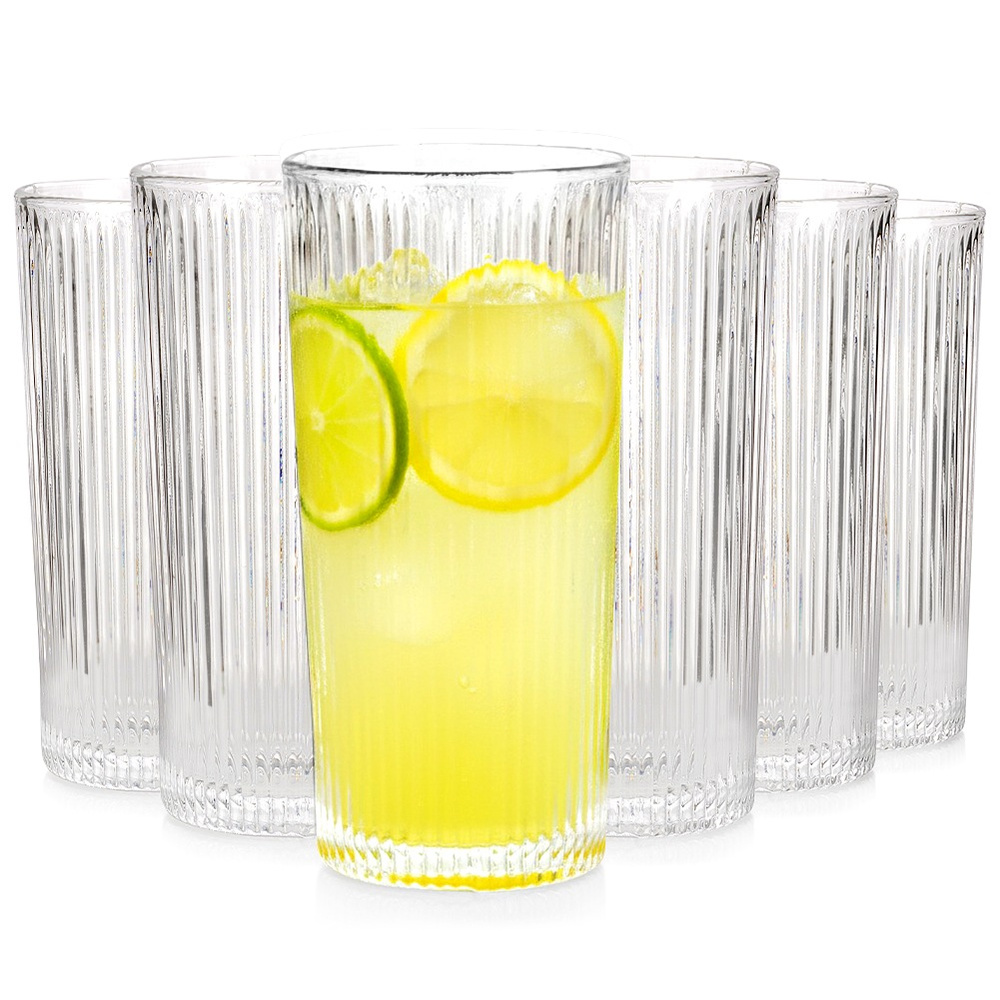 ✅ Zestaw 6 szt. szklanek o pojemności 320 ml - Komplet sześciu wysokich szklanek do napojów o pojemności całkowitej 320 ml. Wysokość każdej szklanki wynosi 15 cm, a średnica 7,3 cm. ✅ Wykonane z ryflowanego szkła - Szklanki wykonane są z…