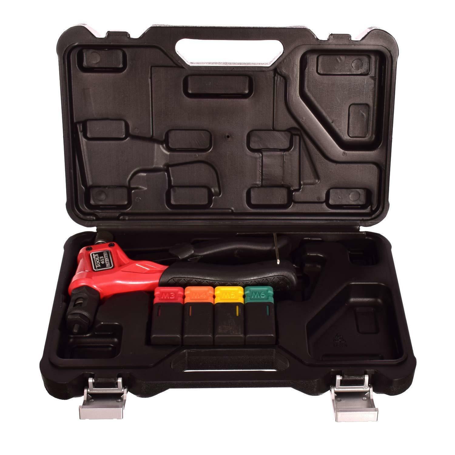Outil professionnel fabriqué à partir de matériaux de haute qualité. Vous permettre de travailler dans des endroits difficiles d'accès. Fonctionne pour les écrous à sertir dans les tailles M3, M4, M5 et M6. La conception de la vis à main est idéale pour charger et décharger les écrous, et la conception de la poignée ergonomique pour un grand confort d'utilisation.