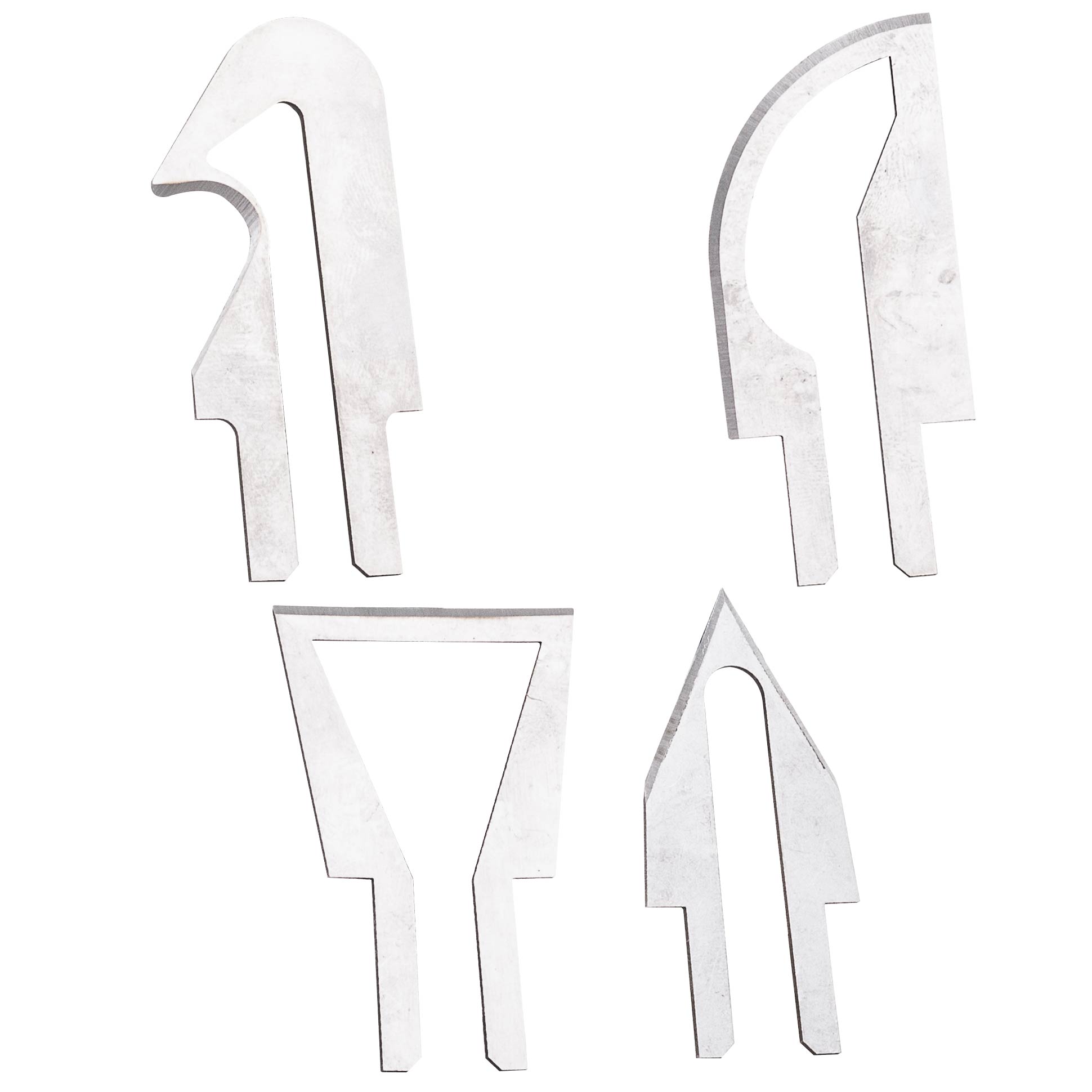 Il a quatre couteaux de différentes formes dans l'ensemble.