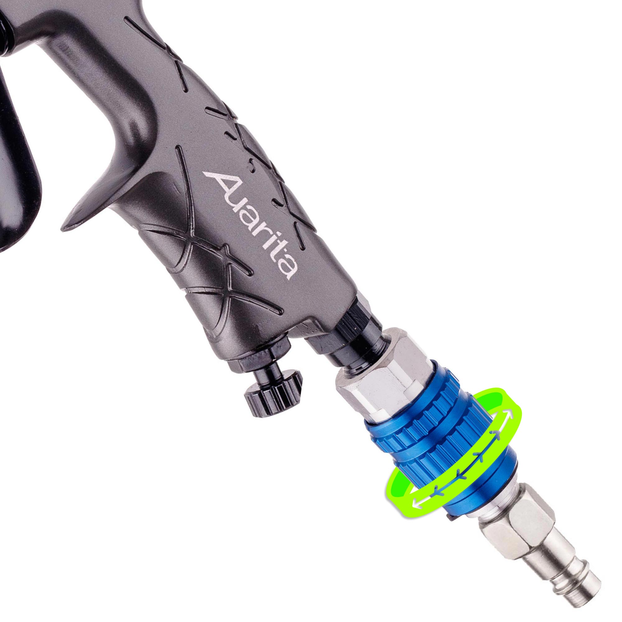 Ciśnieniowy zawór obrotowy przeznaczony do różnego narzędzi pneumatycznych. Idealnie nada się do każdego sprzętu pozbawionego własnej regulacji ciśnienia np. szlifierki pneumatycznej czy pistoletu lakierniczego.