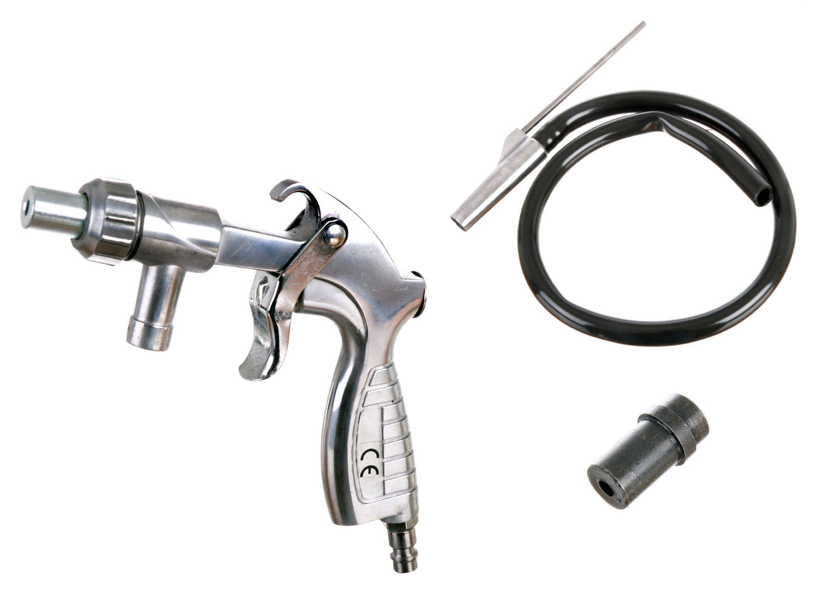 Sand blasting gun with 1x ceramic and 1x metal nozzle