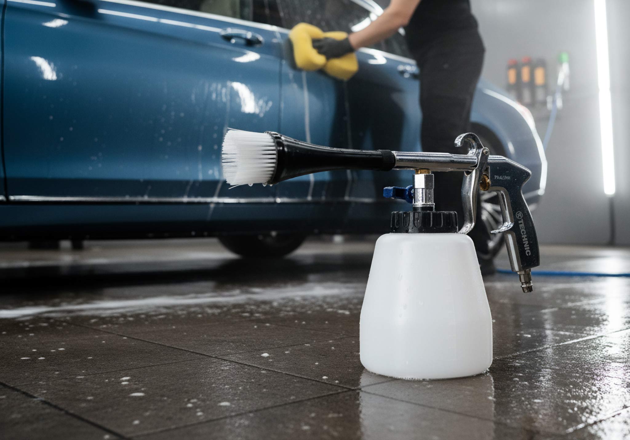 ✅ Dzięki specjalnie ukształtowanej dyszy z wirującym rdzeniem, pod wpływemsprężonego powietrza wytwarza spieniony roztwór, który czyści elementyminimalnie je nawilżając