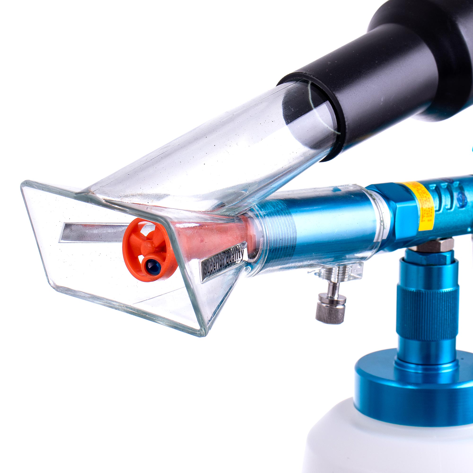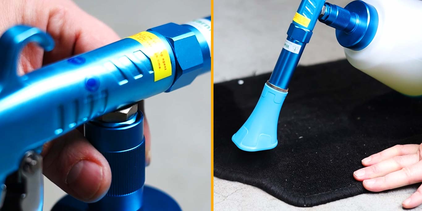 The gun is ideal for wet cleaning of all kinds of dirt on upholstery, air conditioning, plastic elements, mirror elements, seats, carpets, air vents and other difficult to remove dirt.