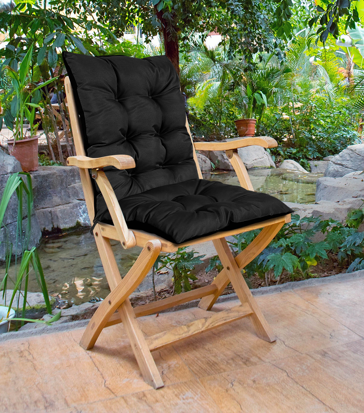 Wytrzymała WODOODPORNA poduszka na KRZESŁO ogrodowe na siedzenie i oparcie w kolorze czarnym, WYGODA i zadowolenie gwarantowane!